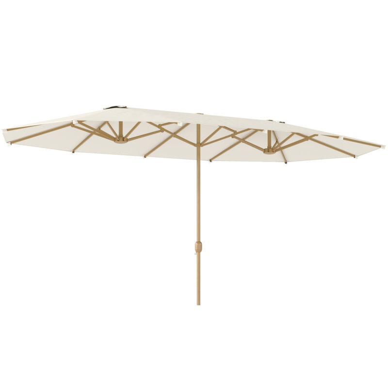 Ombrellone da Terrazza a Mezzaluna con Apertura a Manovella e Palo a 2 Sezioni, 2,6×1,35 m, Bianco