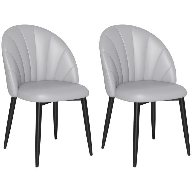 Set 2 Sedie da Pranzo Moderne per Cucina e Soggiorno con schienale a conchiglia e cuciture decorative, 52x54x79cm, Grigio Chiaro | Aosom Italy