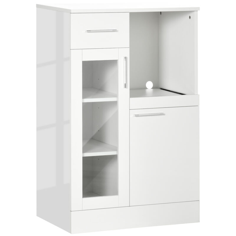 Mobile Multiuso in Truciolato con Armadietto e Cassetto in Stile Rustico, 78,5x39x89,4cm, Bianco