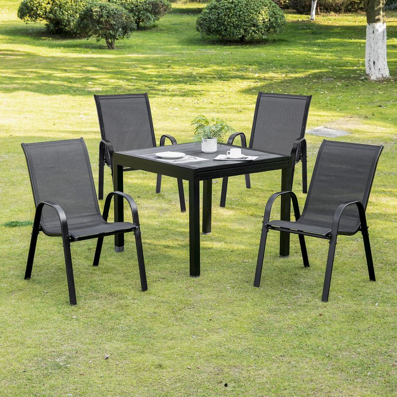 Sedie da Giardino Set 4 Pezzi con Braccioli, in Metallo e Tessuto Traspirante, 70x54x90cm, Nero