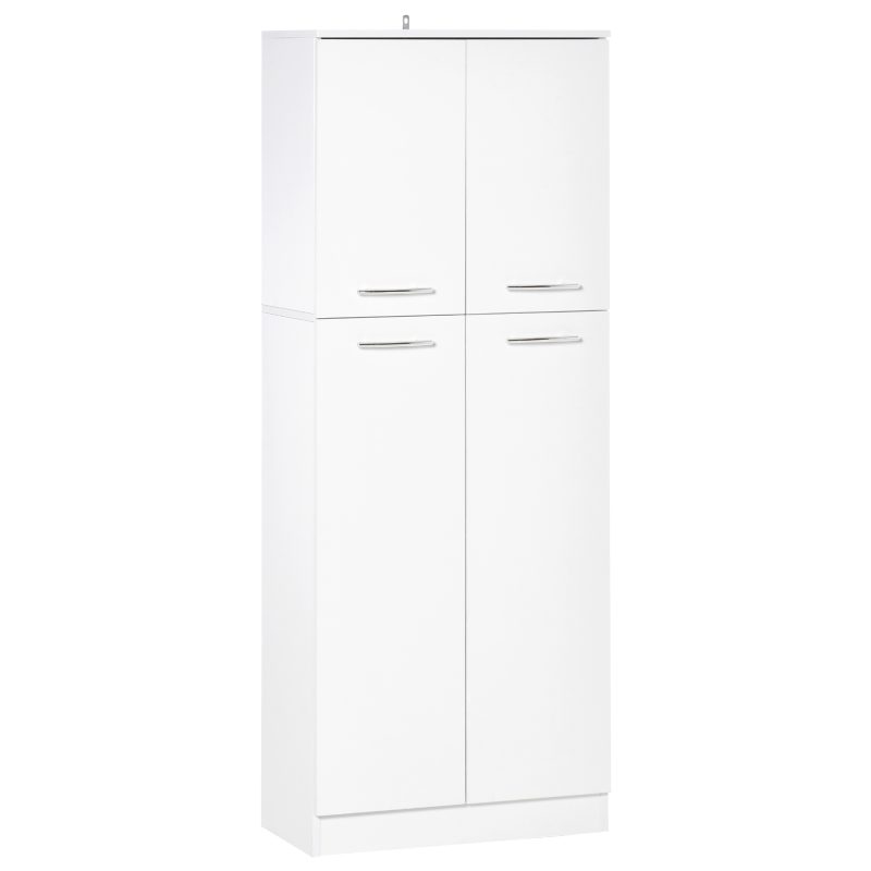 Mobiletto Bagno Pensile con 2 Ripiani in Vetro Regolabili e Anta Senza Maniglia, Bianco Lucido