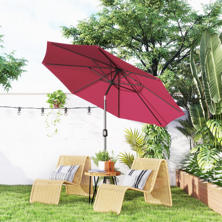 Ombrellone da Giardino 3×2.5 m Inclinabile con Palo Smontabile, in Metallo e Poliestere Rosso Scuro