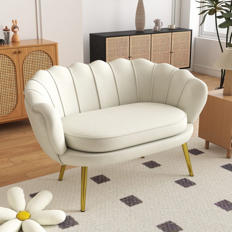 Divano Vintage 2 Posti Industrial Chic, Divanetto Francese per Ingrasso in Velluto, 130x77x77cm, Bianco