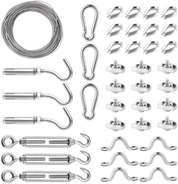 Kit per rotolo di filo da giardino e filo per recinzioni, 30 m in acciaio inox 304, filtro per tenditori, gancio di espansione, moschettone, morsetti per funi metalliche