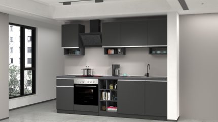 Cucina lineare SOLE da 256 cm, composizione 1 Antracite opaco / Report