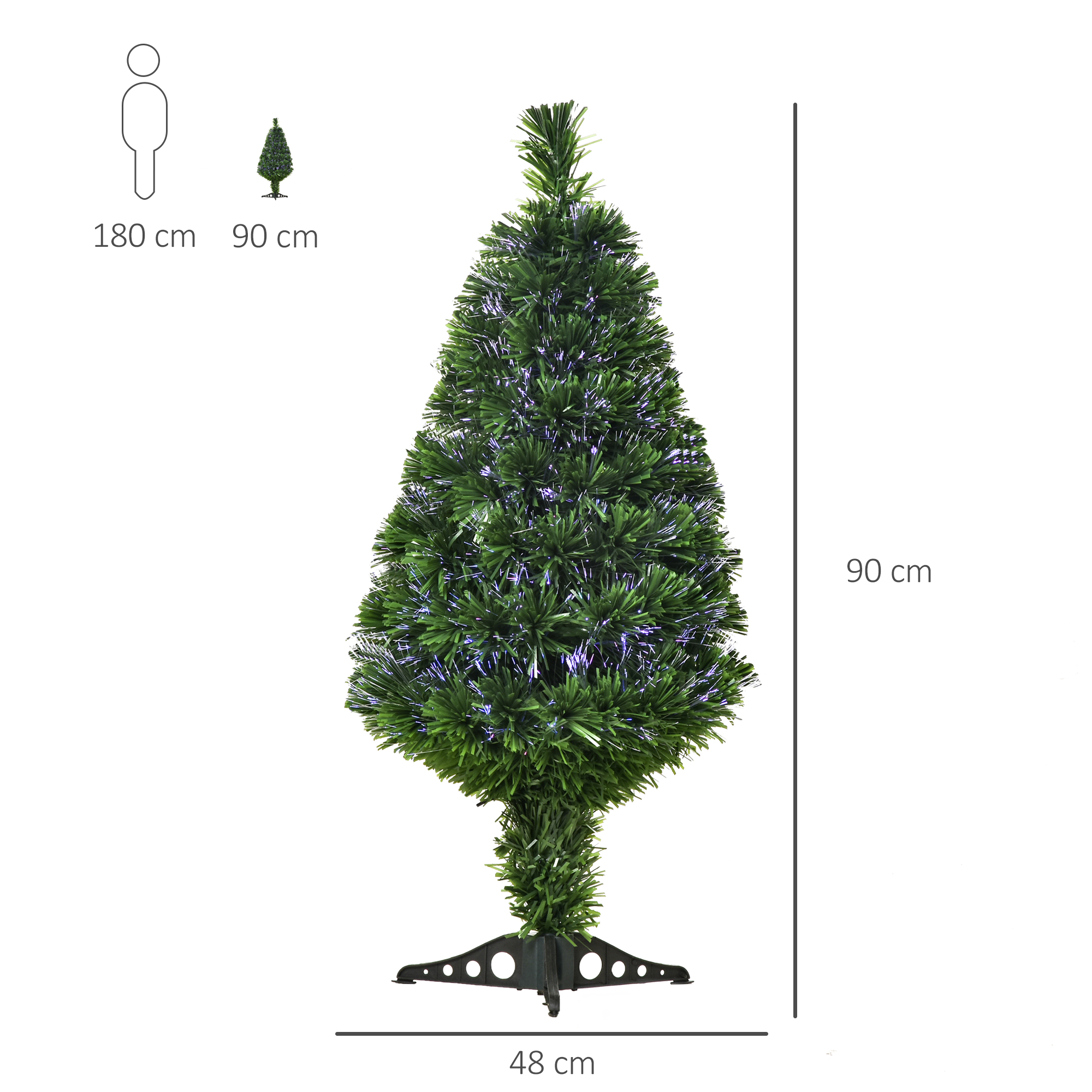 90cm albero di natale artificiale con luci e fibre ottiche, 90 Folti Rami in PVC, Decorazione di Natale con 4 Colori, Verde | Aosom Italy