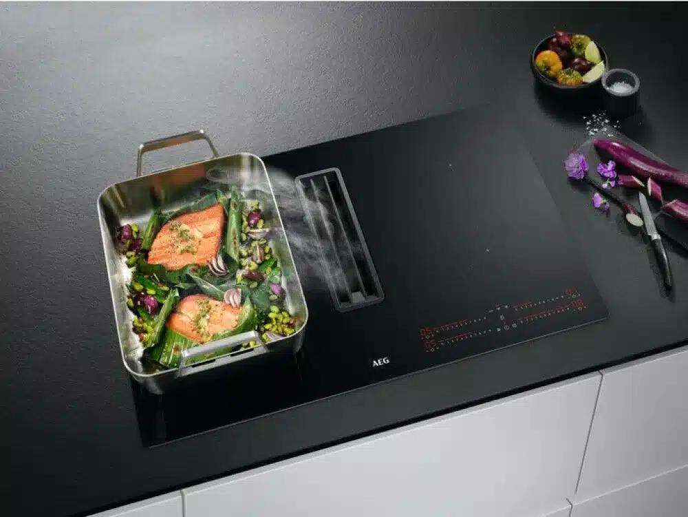 AEG CCE84751CB Piano cottura induzione cm.83 con cappa estraente integrata ventola downdraft / convezione /