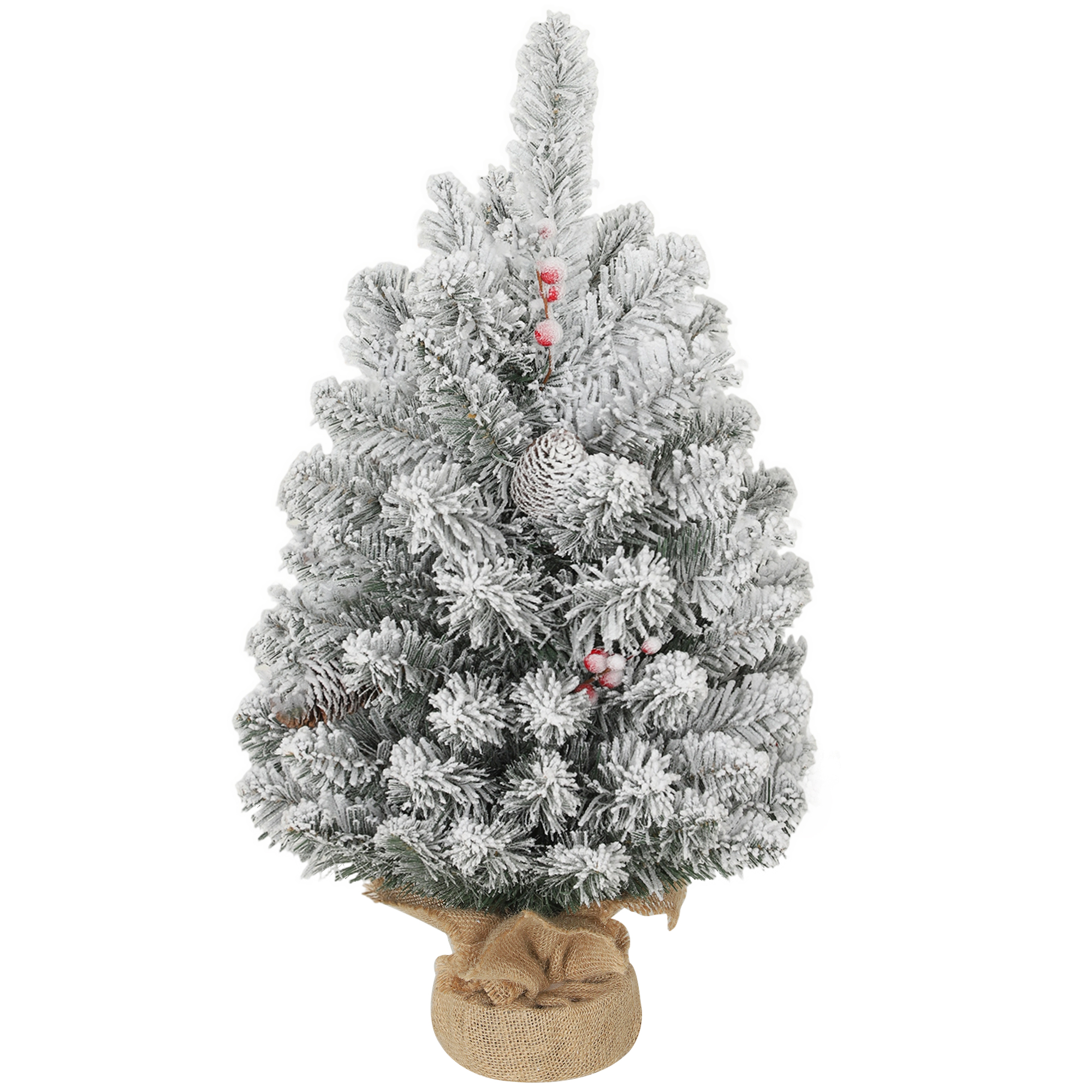 Albero di Natale Piccolo Alto 60 cm con 72 Rami Innevati, Pigne e Bacche Rosse, Verde