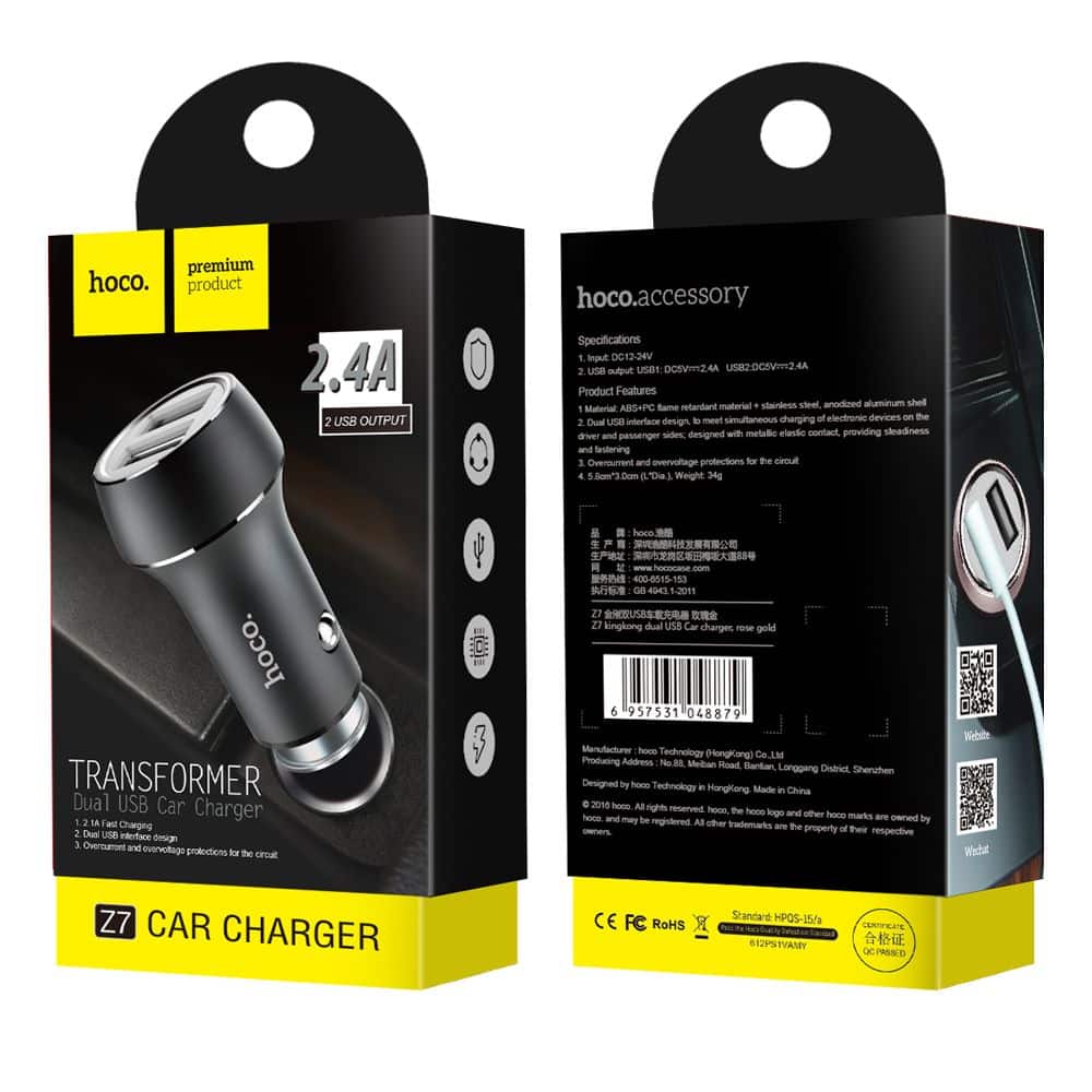 Alimentatore Auto Z7 Kingkong – Caricabatteria IgnifugoAlimentatore Auto Z7 Kingkong – Caricabatteria IgnifugoCaratteristiche del ProdottoColori Disponibili: Silver o nero.Ingresso: DC 12-24V, compatibile con la maggior parte dei veicoli.Uscita USB: Due porte USB con uscita di DC 5V/2.4A ciascuna, dotate di identificazione intelligente per una ricarica ottimale.Materiale: Realizzato in materiale ignifugo ABS + PC + acciaio inossidabile con guscio in alluminio anodizzato per una maggiore durata e sicurezza.Design: Doppia interfaccia USB per consentire la ricarica simultanea di dispositivi elettronici sia per il conducente che per il passeggero. Progettato con contatto flessibile metallico per una connessione veloce e stabile.Sicurezza: Protezione da sovracorrente e sovratensione grazie a circuiti multipli di protezione integrati.Dimensioni e Peso: Compatto con dimensioni di 5,8 cm x 3,0 cm (L x Diam.), e un peso di soli 34 g.Design Sicuro e AffidabileIl caricabatteria per auto Z7 Kingkong è costruito con materiali ignifughi di alta qualità, garantendo la massima sicurezza durante l’uso. Il guscio in alluminio anodizzato aggiunge un ulteriore livello di robustezza e stile.Ricarica Simultanea con Doppia Porta USBGrazie al design a doppia interfaccia USB, è possibile ricaricare due dispositivi contemporaneamente. Il sistema di identificazione intelligente assicura che ogni dispositivo riceva la giusta quantità di potenza, rendendo il processo di ricarica rapido ed efficiente.Protezione Avanzata dei CircuitiDotato di protezione da sovracorrente e sovratensione, il caricabatteria Z7 Kingkong salvaguarda i tuoi dispositivi elettronici da eventuali danni, garantendo una ricarica sicura in ogni situazione.