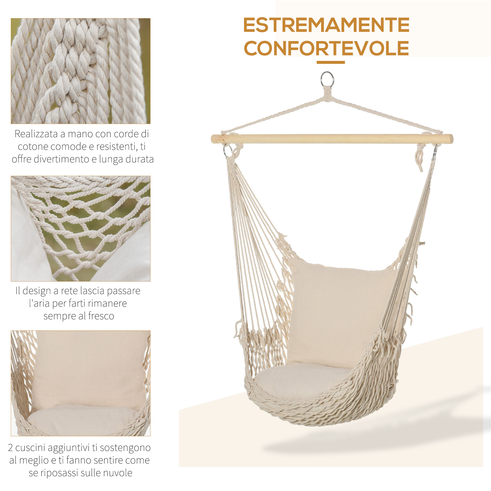 Se chiudi gli occhi ti sembrerà di essere su una nuvola! Proprio così: questa amaca da giardino [ITALFROM HOME DESIGN] è così confortevole che non vorrai più alzarti, Grazie ai due comodi cuscini e alla struttura in corda, ti offre il massimo supporto e ti aiuta a mantenere una posizione stabile senza alcuno sforzo,