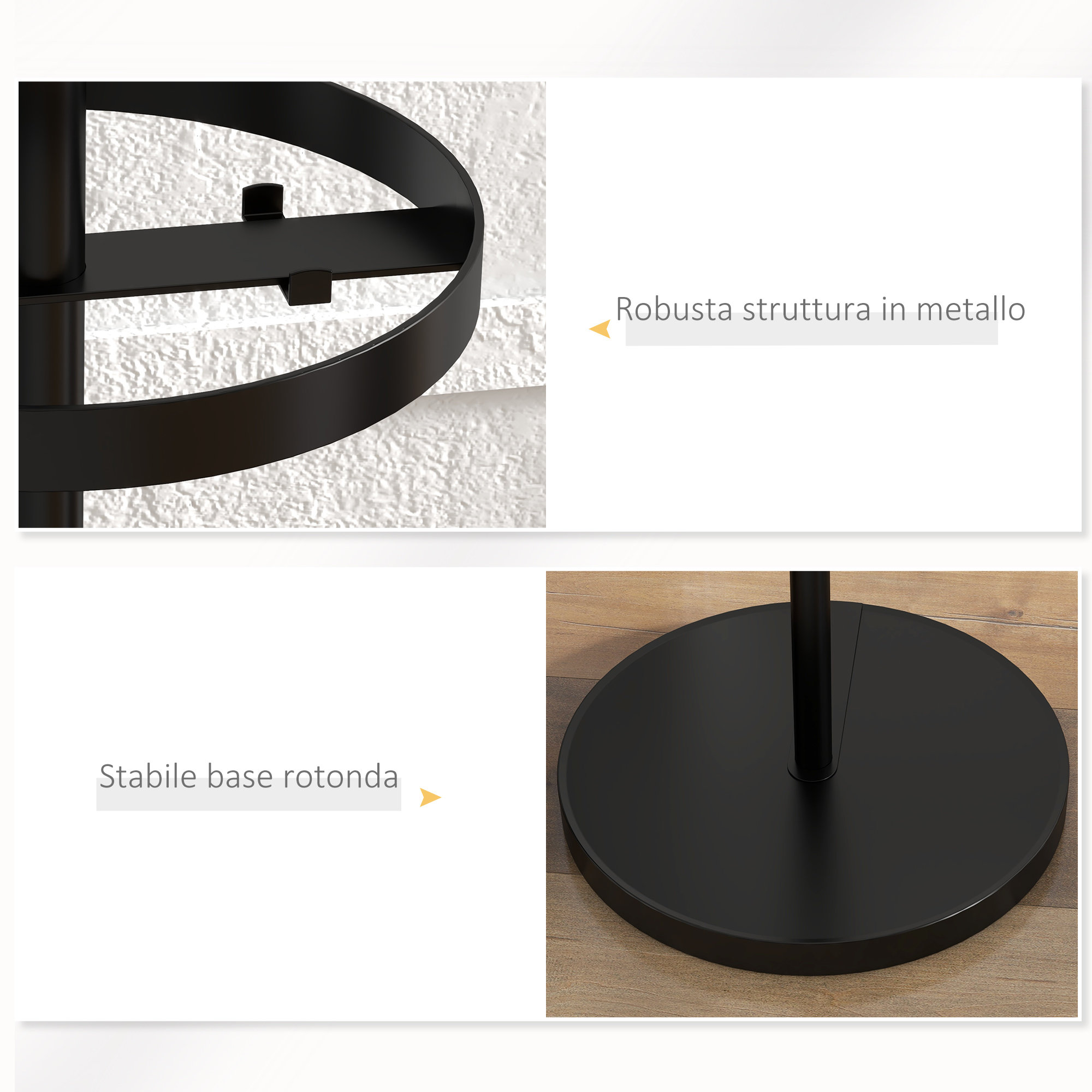 Appendiabiti da Terra con Portaombrelli e 8 Ganci a Disco in Metallo Ø34 x 177cm, Nero