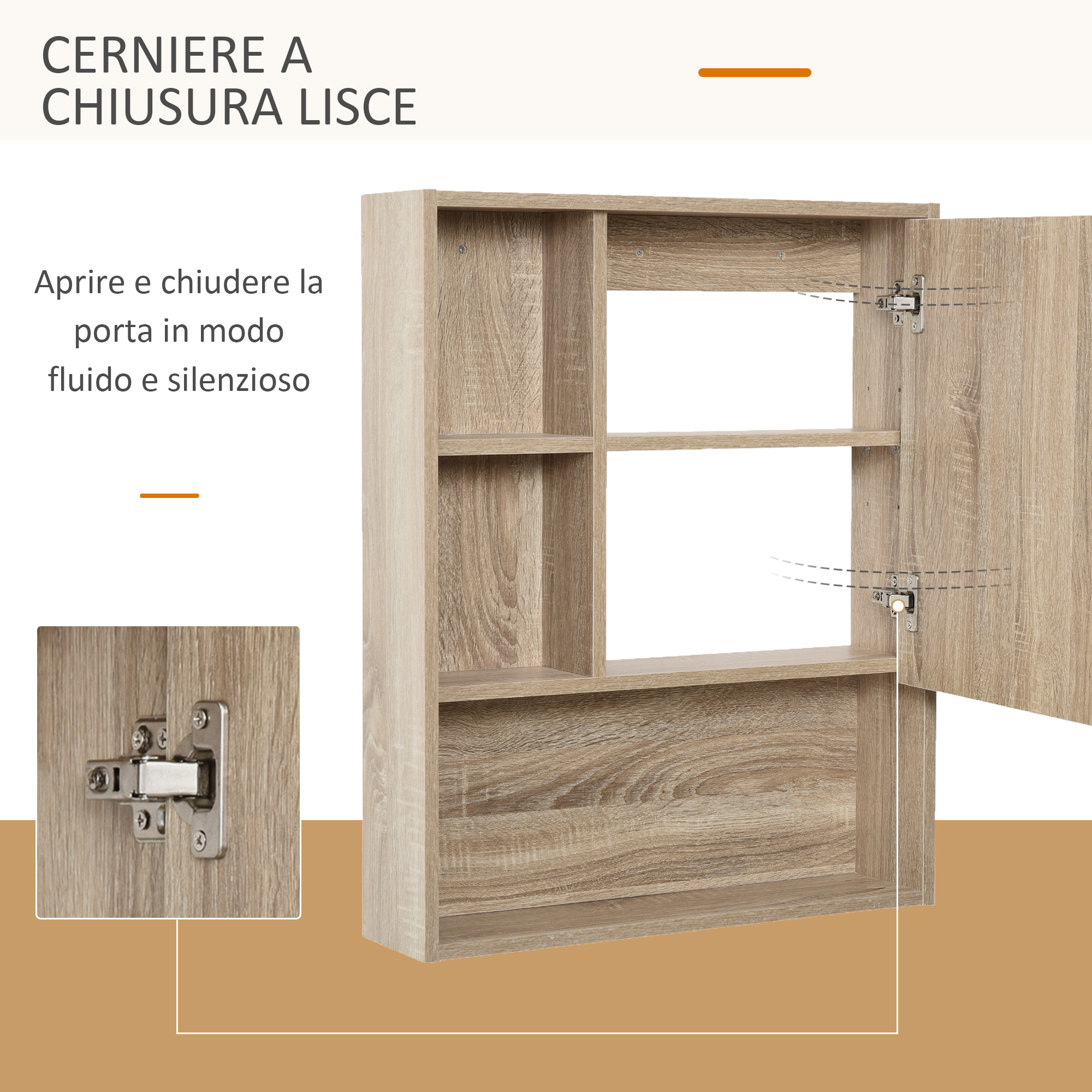 - • Armadietto bagno dotato di ripiani aperti