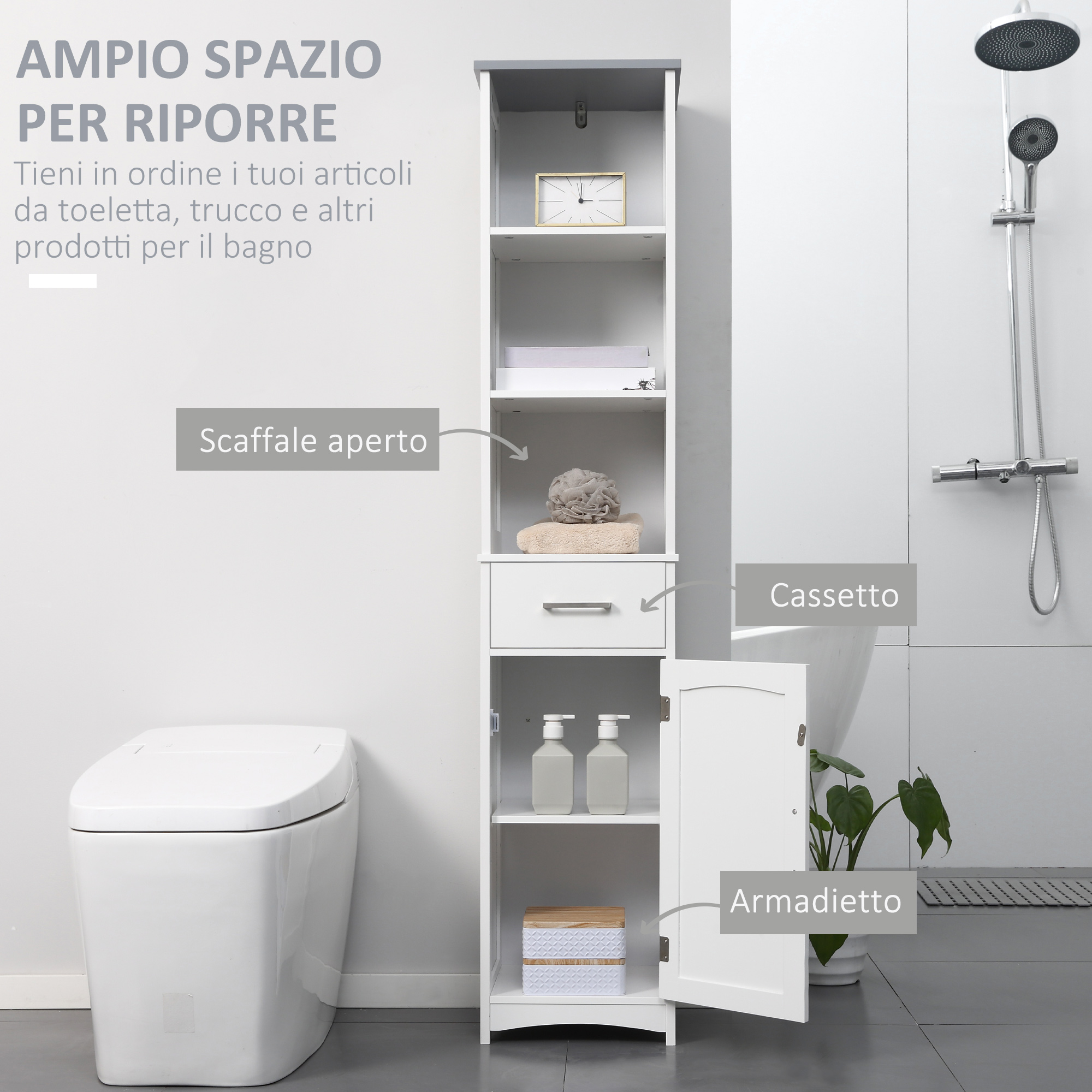 Armadietto Bagno con Scaffale a 3 Livelli, 1 Cassetto e 1 Mobiletto, 34x30x163cm