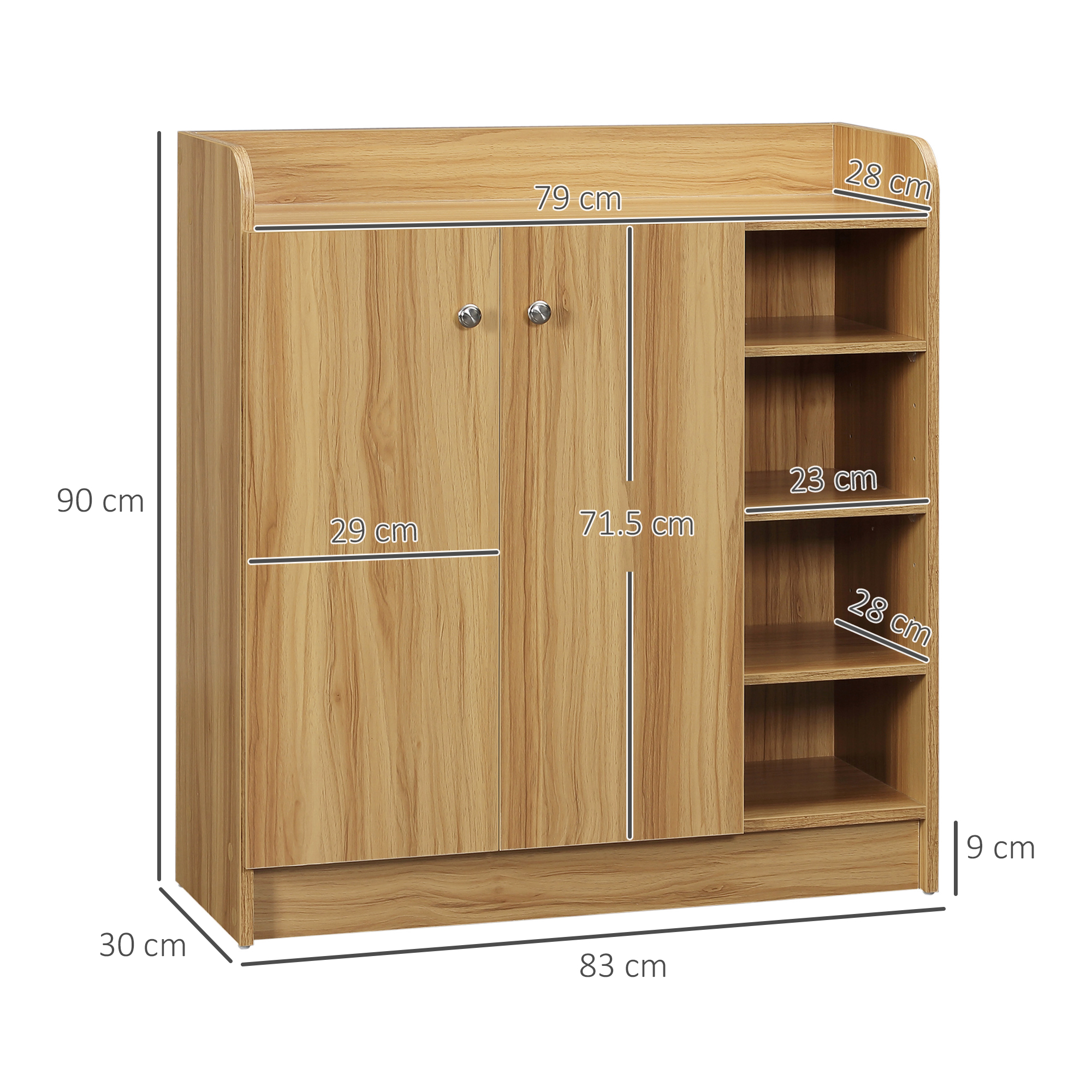 Armadio Scarpiera Salvaspazio e Moderno in Legno per 12 Paia con 4 Ripiani Aperti, 83x30x90 cm, Marrone Chiaro