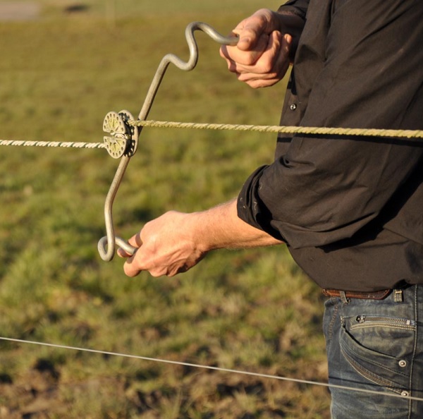 Attrezzo per l’applicazione ed il tensionamento dei tendifilo permanenti.