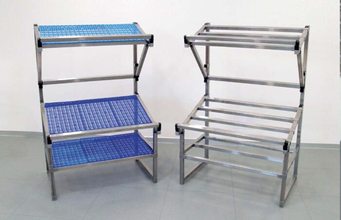 Bancarella per l’esposizione della frutta, molto funzionale grazie ai tre livelli di piani in grado di supportare cassette e contenitori di diversa dimensione e allo stesso tempo esteticamente gradevole.—————–Stainless steel stand with three display levels, featuring modern lines and a captivating design. The display levels can be supplied with slatted stainless steel profiles or with plastic shelves. All components are compatible for use within the food sector CONSEGNA IN 15/20 GG