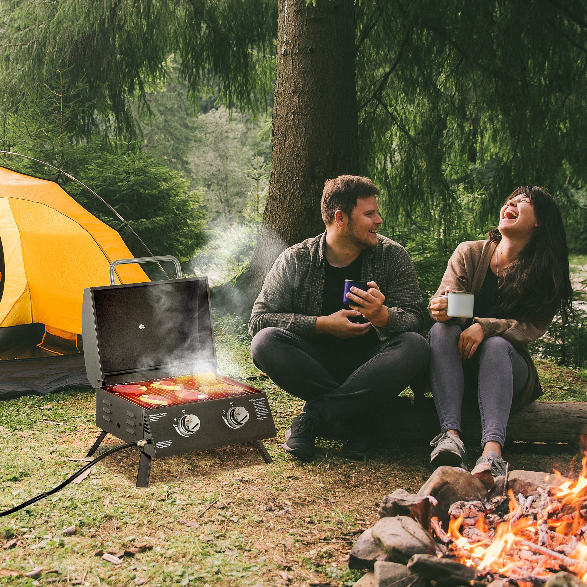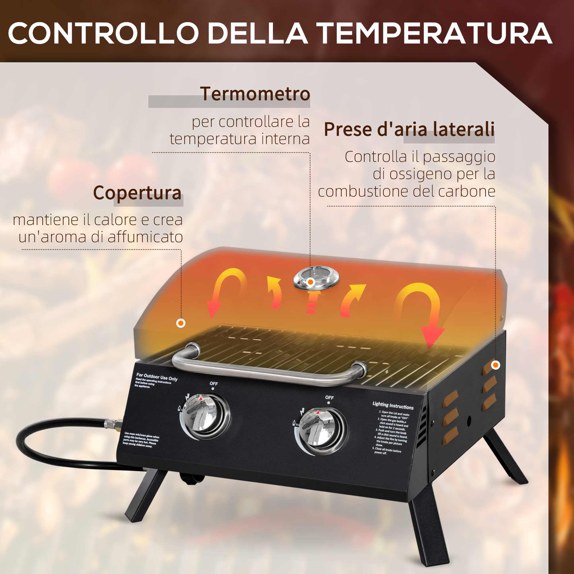 Barbecue a Gas Pieghevole con Coperchio, Termometro e 2 Bruciatori in Acciaio, 55×46.5×41 cm, Nero