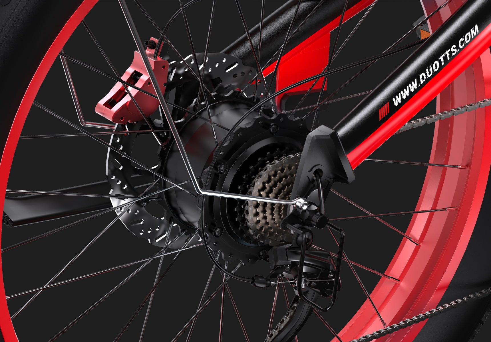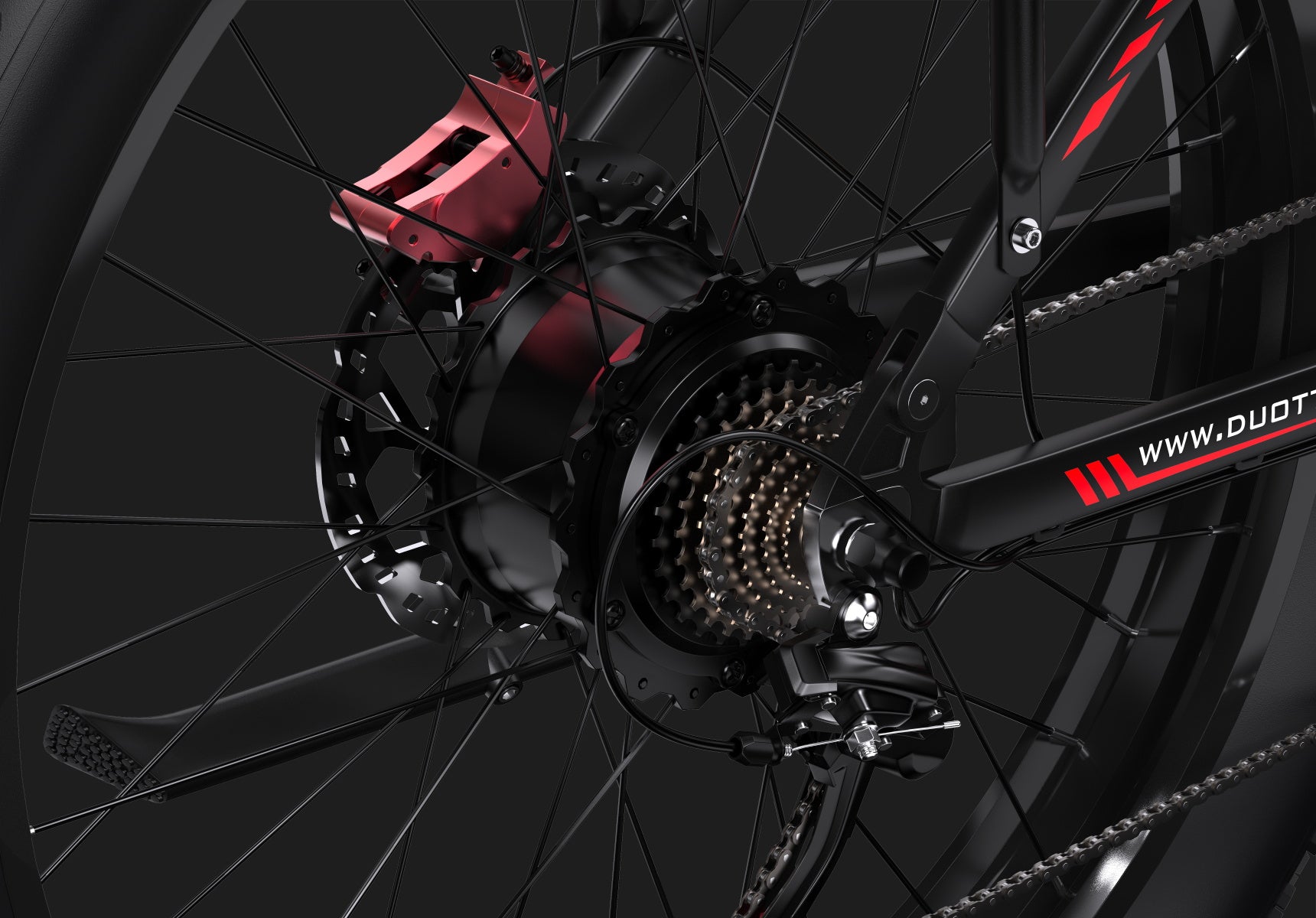 La bici elettrica Duotts N26 con acceleratore presenta un design a doppia spalla, che migliora la rigidità e la stabilità della forcella anteriore. Questo approccio innovativo favorisce una maneggevolezza precisa e migliori prestazioni delle sospensioni della bici elettrica fuoristrada Duotts N26, per una guida più piacevole.