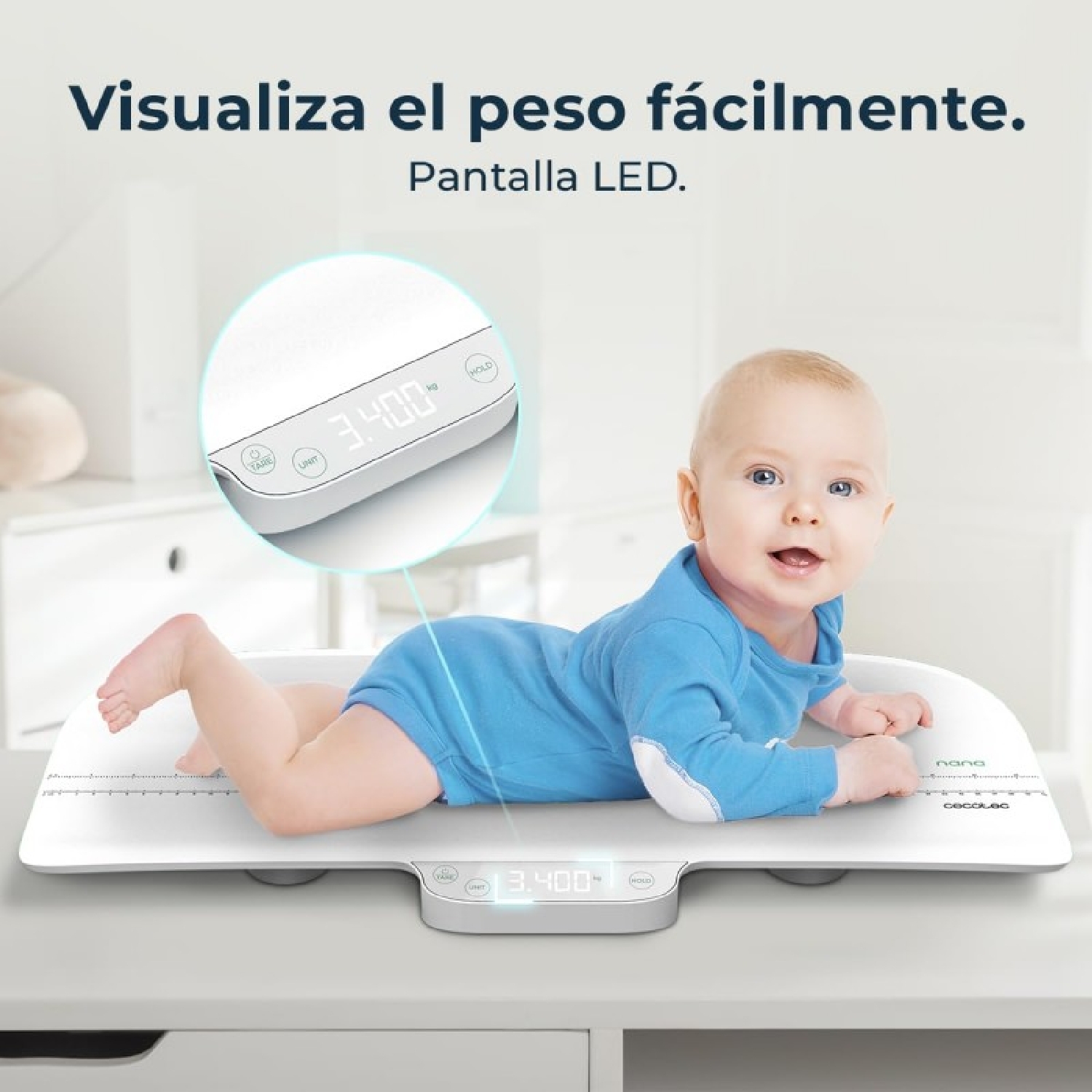 Spegnimento automatico: una volta pesato il bambino, non dovrai preoccuparti di nient’altro poiché la bilancia si spegnerà da sola.