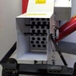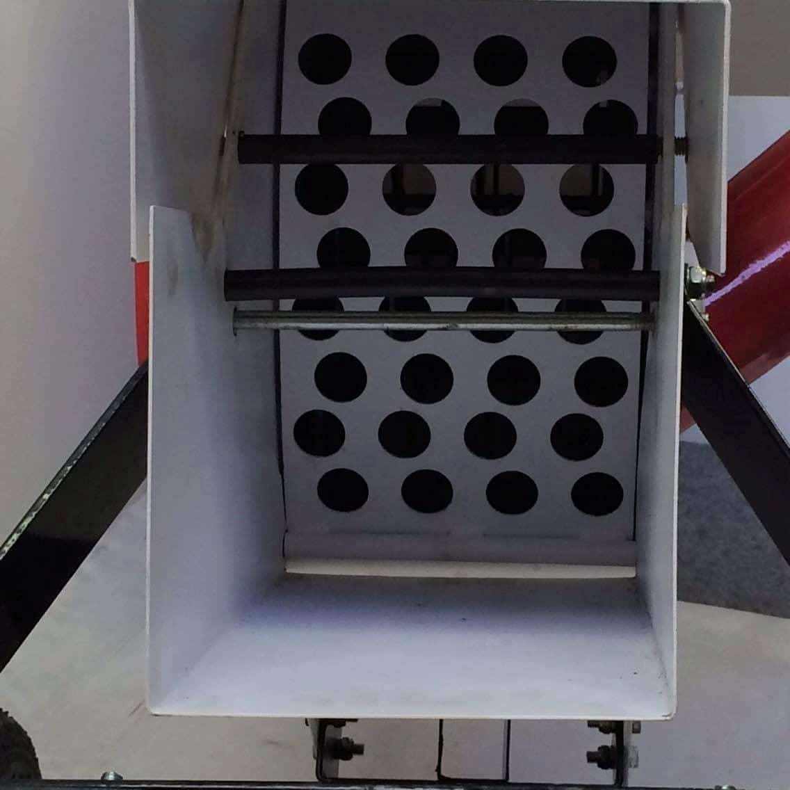 Il sistema di taglio è costituito da 2 lame, 10 coltelli e 10 martelli. Le 2 lame di taglio, montate su un piatto girevole in acciaio, poste a 180° l’una dall’altra affettando il ramo inserito nella tramoggia inferiore. La sinergia tra i 10 coltelli di forma triangolare, con i bordi zigrinati affilati e 10 martelli rettangolari consente un’operazione ottimale di sminuzzamento e di frammentazione del materiale, grazie anche al movimento centrifugo dei martelli e dei coltelli (con una velocità di 2400 g/ minimo). La griglia filtrante inoltre trattiene il materiale fino a quando non viene macinato in frammenti piccolissimi con dimensioni da 1 a 3 cm.