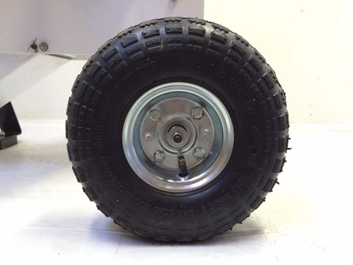 Per consentire e facilitare lo spostamento ed il trasporto, il biotrituratore è dotato di ruote in gomma con profilo garden di dimensioni 4.10 x 3.50-4 (pneumatico appositamente studiato per evitare solcature nel terreno e forature) e di un comodo e pratico maniglione.