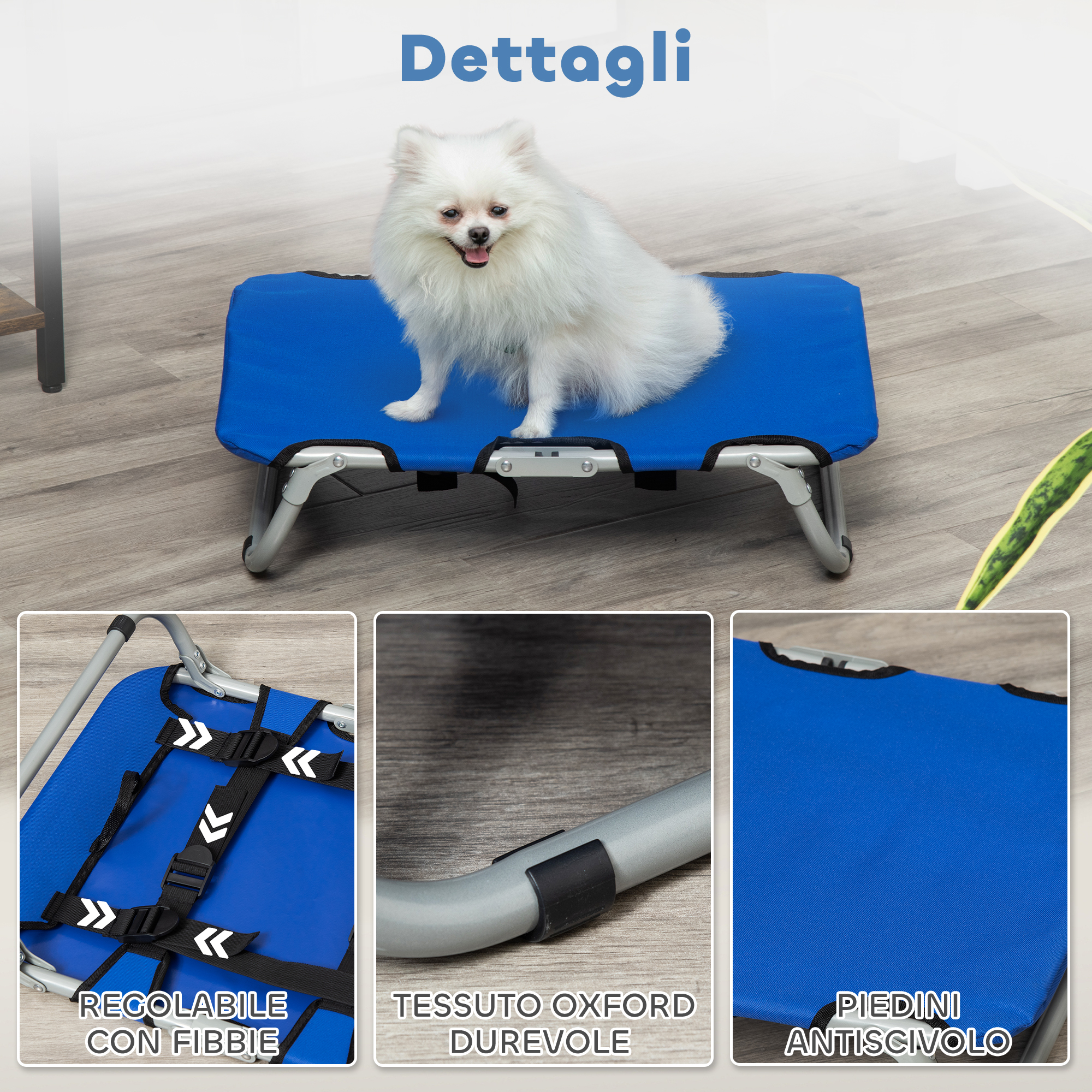 Brandina per Cani Taglia Piccola Rialzata e Pieghevole per Interno ed Esterno, 59x46x15 cm, Blu