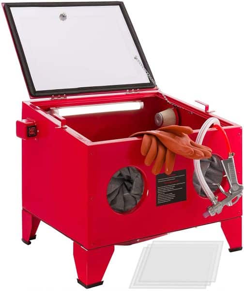 Descrizione prodotto Cabina di sabbiatura 90LLa cabina di sabbiatura AREBOS da 90 litri si adatta in modo ottimale alla lavorazione di pezzi di piccole e medie dimensioni. È universalmente applicabile nell’industria, nell’automobile, nella riparazione, nel restauro e nell’hobby.Con la cabina di sabbiatura è possibile rimuovere la ruggine, la corrosione e la vernice dalle parti senza dover respirare la polvere o lo sporco, poiché si lavora in uno spazio chiuso. Grazie al poco spazio richiesto, è possibile installare la cabina in qualsiasi officina.La cabina di sabbiatura include una pistola di sabbiatura di alta qualità con 4 ugelli in ceramica e due grandi guanti da lavoro in lattice. La cabina offre una visibilità ottimale e una protezione del lavoro durante la lavorazione del pezzo grazie alla finestra di visualizzazione con pellicola protettiva incollata. La griglia di stoccaggio stabile permette di collocare i pezzi da lavorare all’interno della cabina.La cabina è progettata in modo da poter risparmiare e riutilizzare il materiale di sabbiatura. Offre anche la possibilità di lavorare senza polvere grazie alle guarnizioni a tutto tondo sul coperchio e sui telai delle porte.Per un risultato ottimale, è meglio usare come materiale di sabbiatura perle di vetro o granuli con una granulometria di 0,2-0,8 mm.Non usare mai la sabbia da costruzione convenzionale, perché è troppo bagnata e troppo grossolana. Si intaserebbe la macchina!Trai vantaggio dall’imponente effetto “prima-dopo”: Perle di vetro con “100-200 μm” sono state usate come materiale di sabbiatura.Punti salienti: Pistola sabbiatrice di alta qualità con 4 ugelli in ceramicaCon collettore di polvereUn paio di grandi guanti da lavoro in latexCon oblò di visualizzazioneCon collettore di aspirazione fisso e luce di scarico Dati tecnici Capacità: 90 lDimensioni: 58,5 x 48 x 49 cmPressione massima di esercizio: 125 PSIFluorescente: 12VConsumo aria: 150 litri / min, 5CFMAttacco aria: 1 / 4”IGMateriale: AcciaioFinestra Materiale: Vetro acrilicoDimensioni della finestra di visualizzazione: 48,5 x 39 cmdi cui 5 membrane di ricambio, dimensioni : 45,5 x 36,5 cmUgello ceramico: 4 / 5 / 6 / 7 mmPeso: 17 kgColore: RossoProduttore: Canbolat Vertriebs GmbHSpedizione comprende: 1x cabina di sabbiatura con guanti, 1x adattatore per il trasporto della sabbia, 5x fogli di ricambio, 1x manuale d’istruzioni