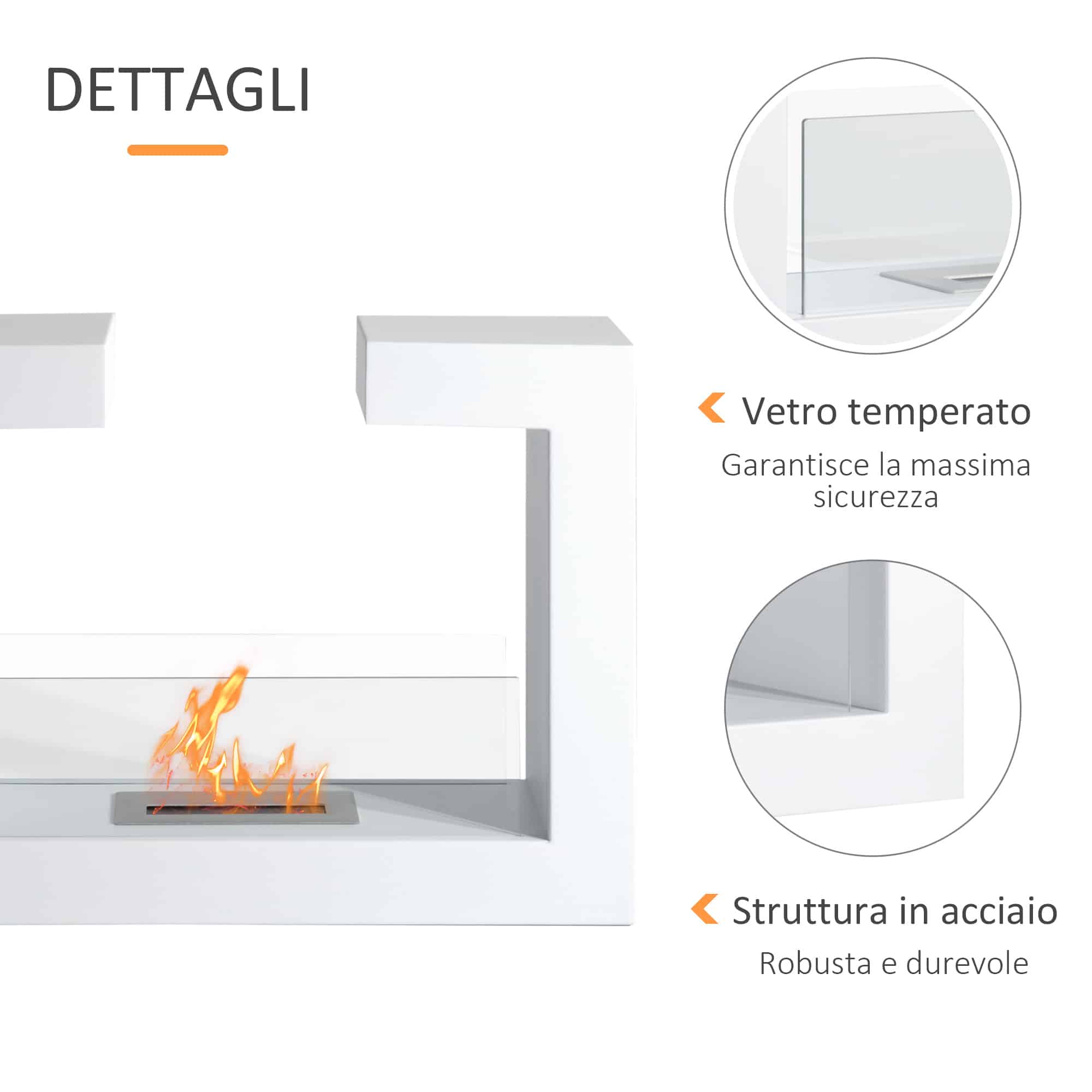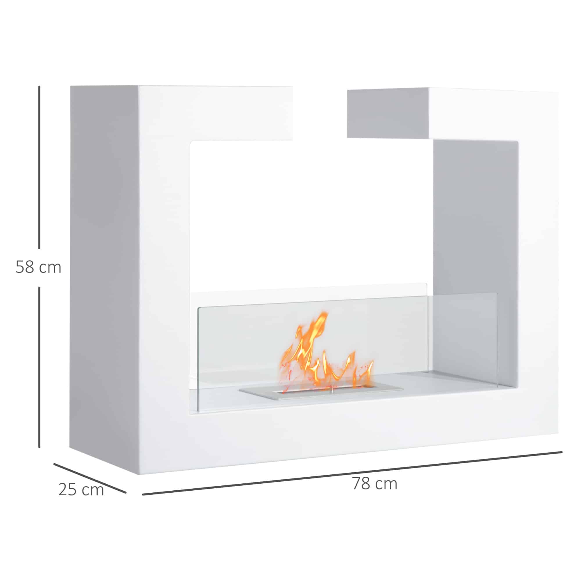 Caminetto a Bioetanolo da Tavolo 20W in Acciaio Inossidabile Inodore con Vetro 78 x 25 x 58 cm Bianco