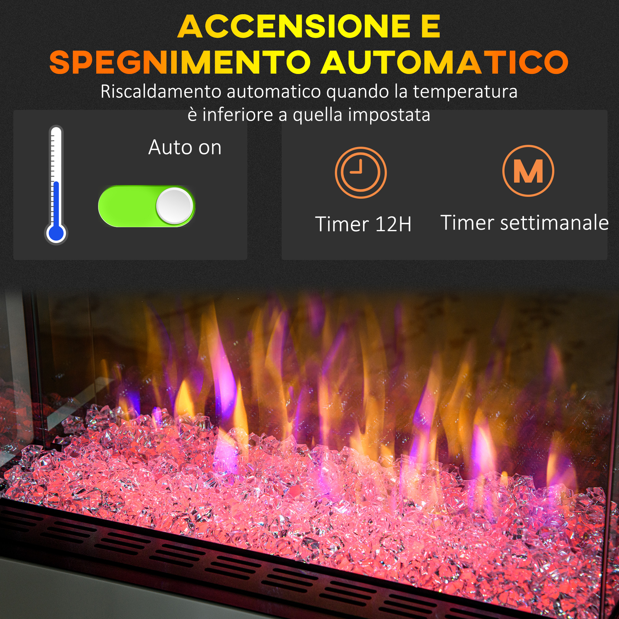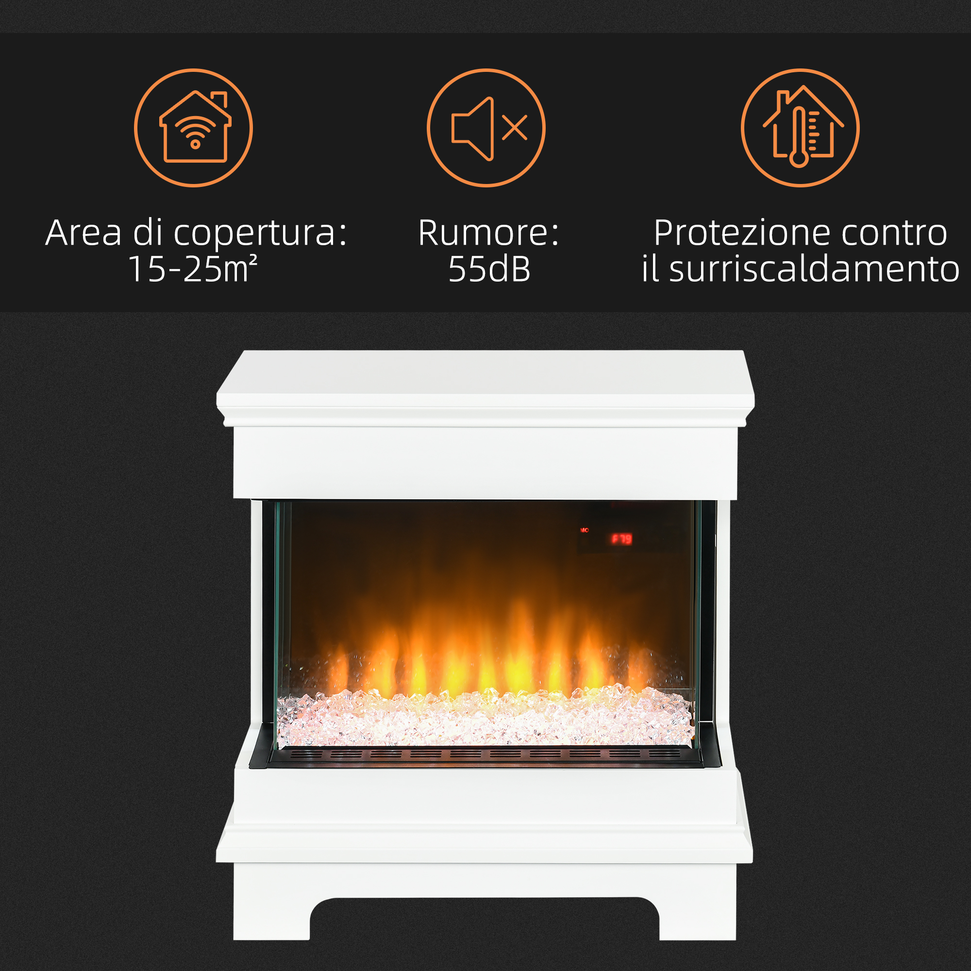 Saluta scintille e combustibili con il nostro caminetto elettrico [ITALFROM HOME DESIGN] da inserire nei tuoi ambienti in totale sicurezza, La struttura offre il calore e il bagliore di un vero camino, rendendolo un punto di riferimento affidabile grazie anche a svariate funzioni come lo spegnimento automatico e il timer da 12h, Porta il calore in casa nei mesi più freddi e tienilo spento nei mesi più caldi,