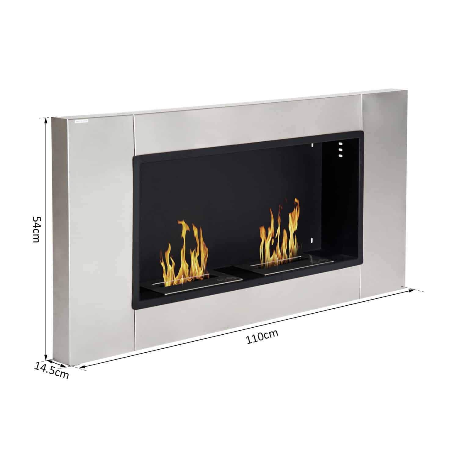 Camino Bioetanolo da Parete con 2 Bruciatori Capacità di 3L 136BTU 110 x 54 x 14,5cm