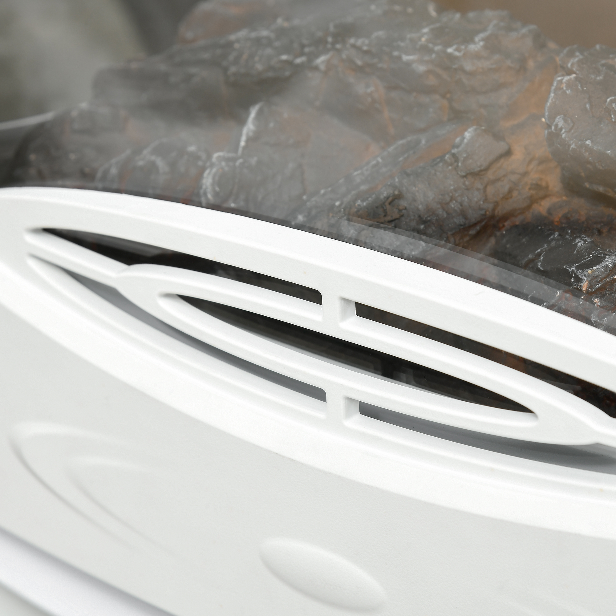 Camino Elettrico Effetto Fiamma e 3 Lati Aperti, Temperatura Regolabile 9W-18W, Protezione da Surriscaldamento, Copertura 20-25m², 39x26x54,8cm, Bianco