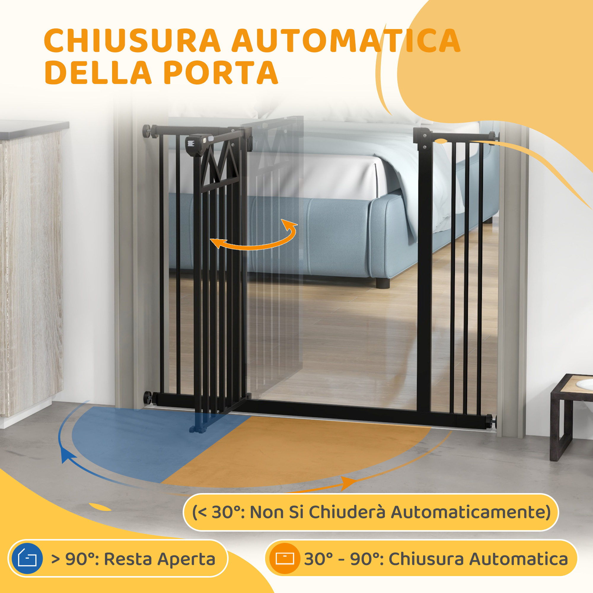 Crea uno spazio sicuro e comodo per il tuo amico a 4 zampe con il cancellino per cani [ITALFROM HOME DESIGN] da utilizzare in casa per separare diversi ambienti e costituire un’area dedicata appositamente a loro, Inoltre, grazie all’intelligente funzione di chiusura automatica e al sistema a doppia serratura, questo cancelletto di sicurezza per scale e porte garantisce la giusta sicurezza e praticità anche per i pelosi più attivi,