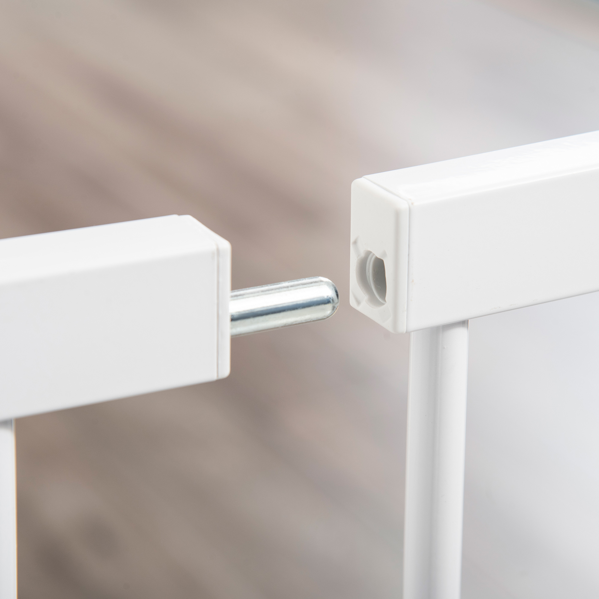Cancelletto per Cani Estensibile con Porta a Chiusura Automatica, in Metallo e ABS, 75-131×76 cm, Bianco