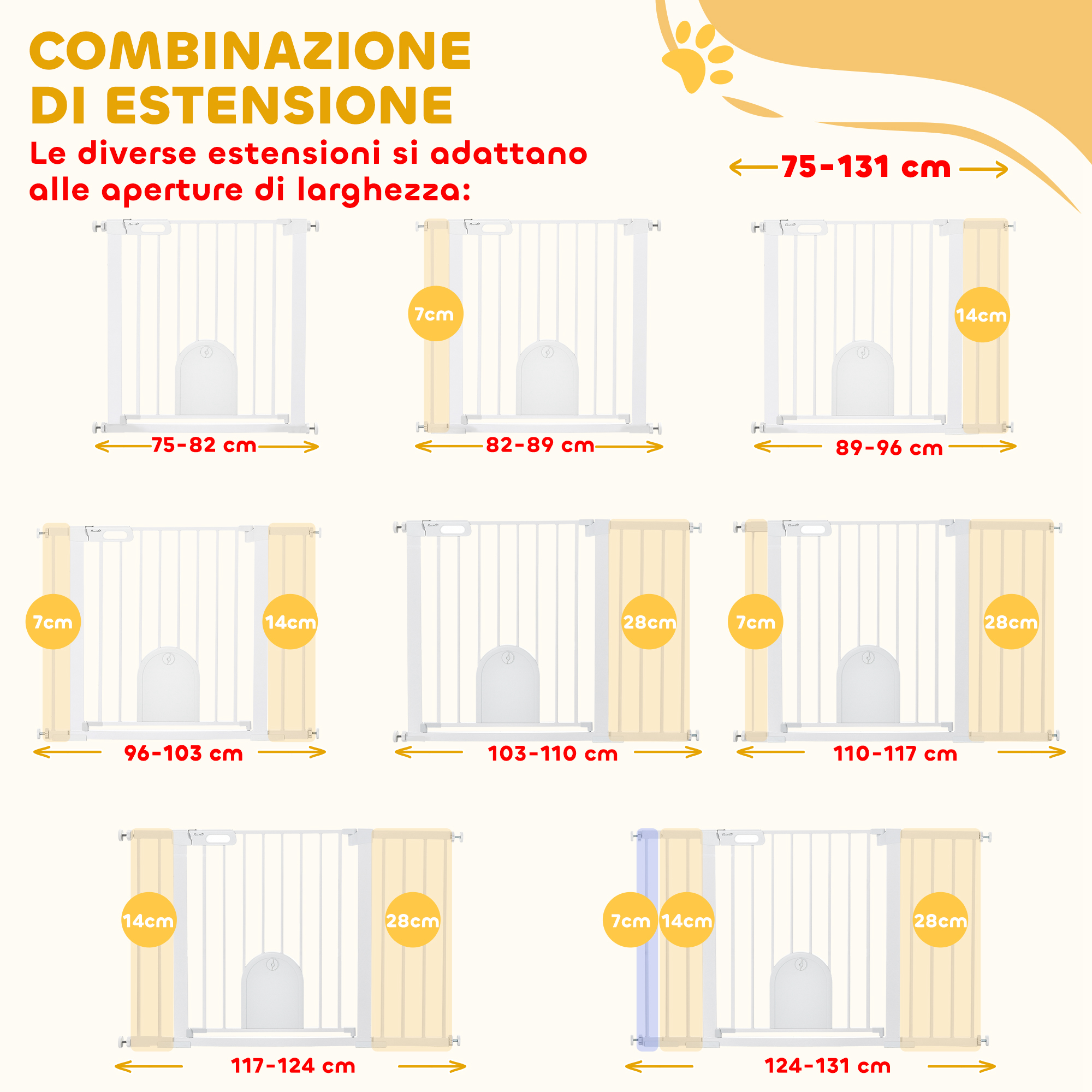 • • Sono incluse 3 estensioni per adattare il cancelletto per cani a spazi da 75-131 cm, Si prega di misurare i propri spazi prima dell’acquisto