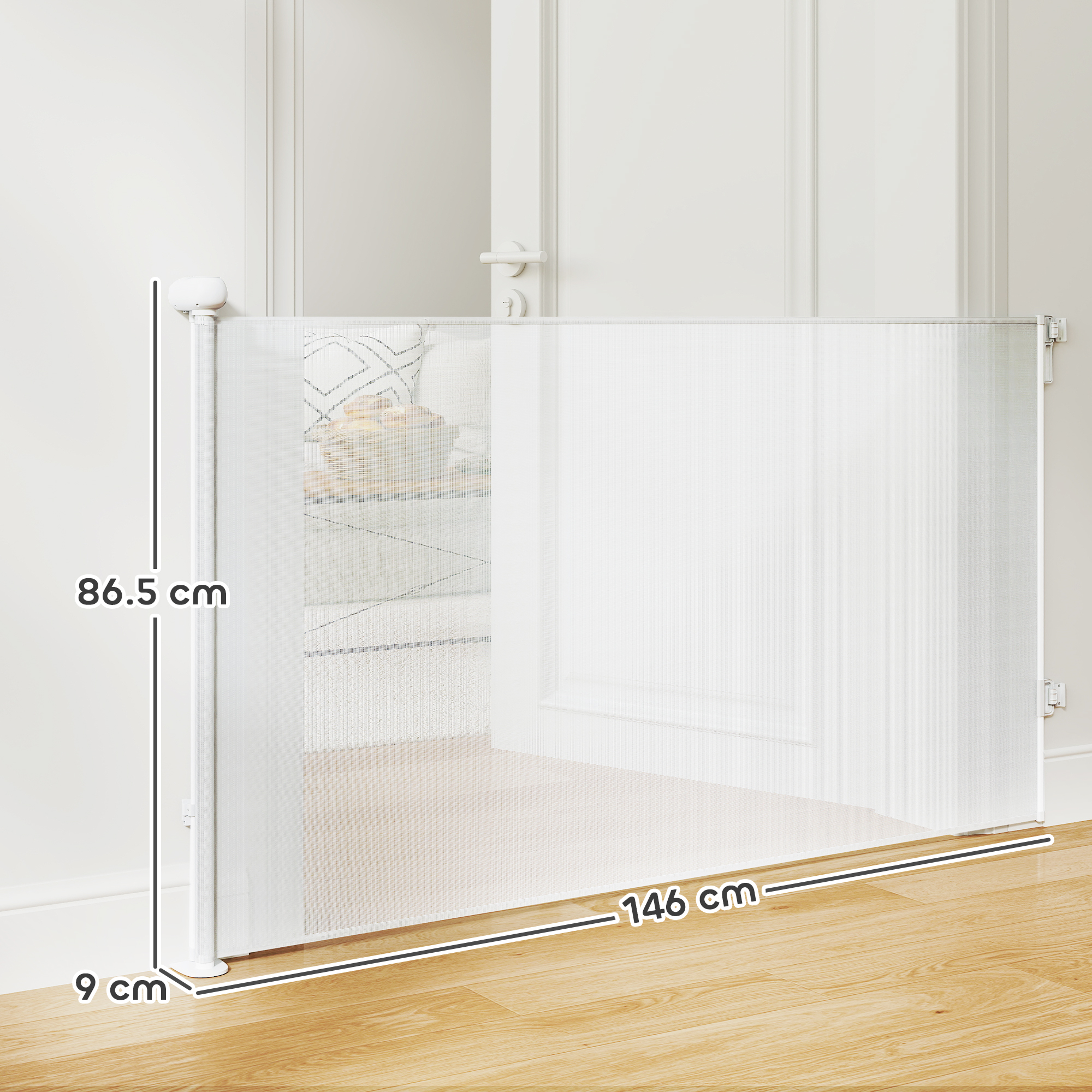 Cancellino per Cani Piccoli Estensibile 0-140×86,5 cm e Retrattile con Blocco Automatico, Bianco