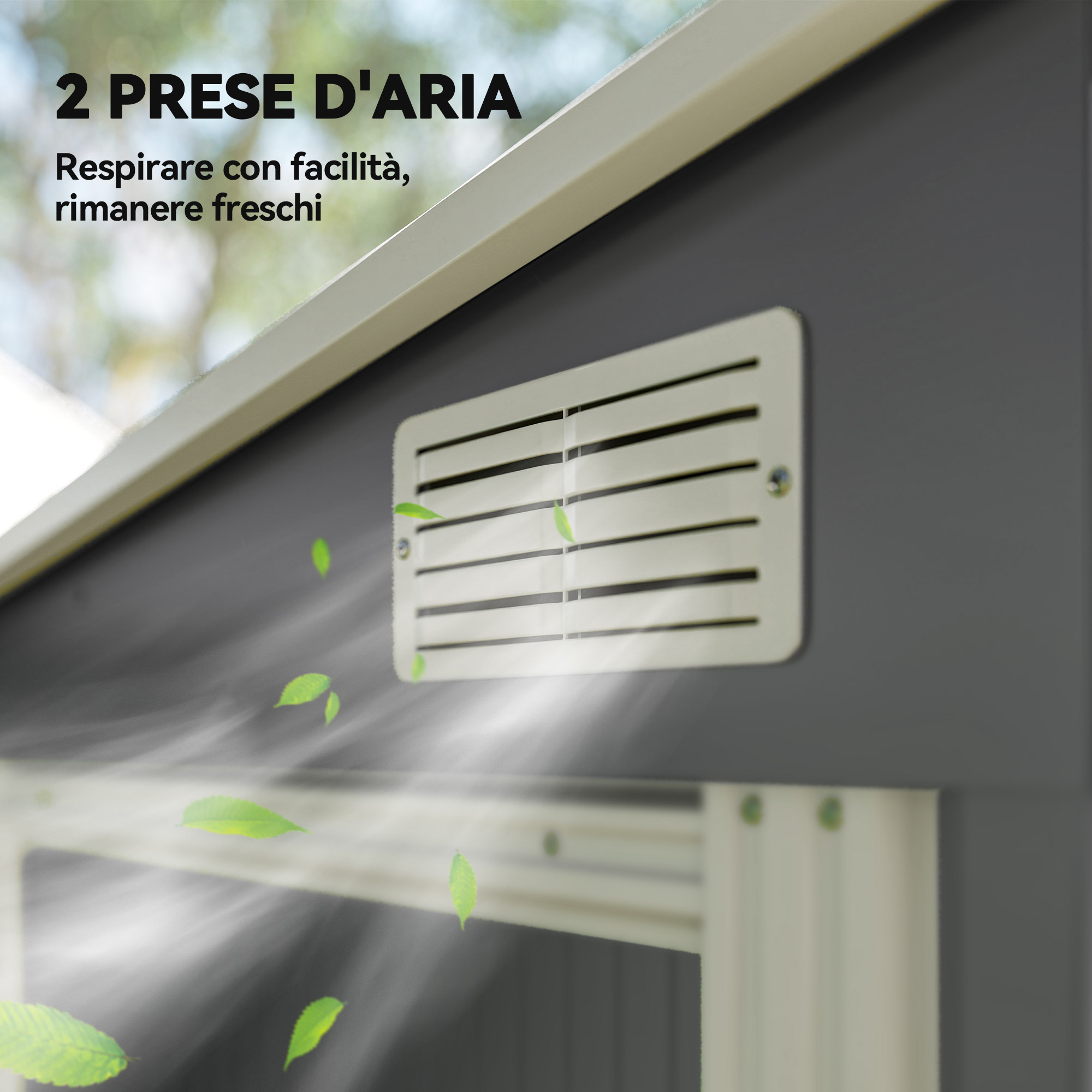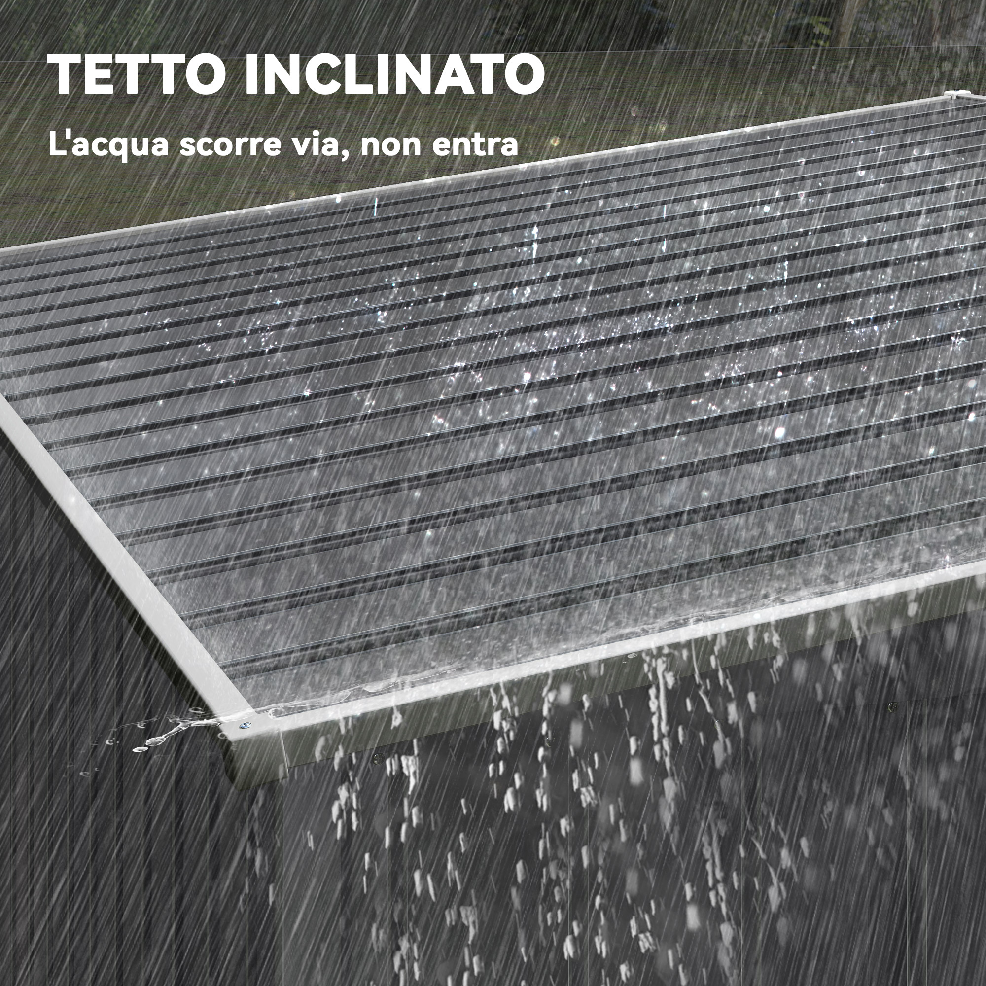 - • Il design del tetto inclinato consente di posizionare la casetta porta attrezzi contro le pareti
