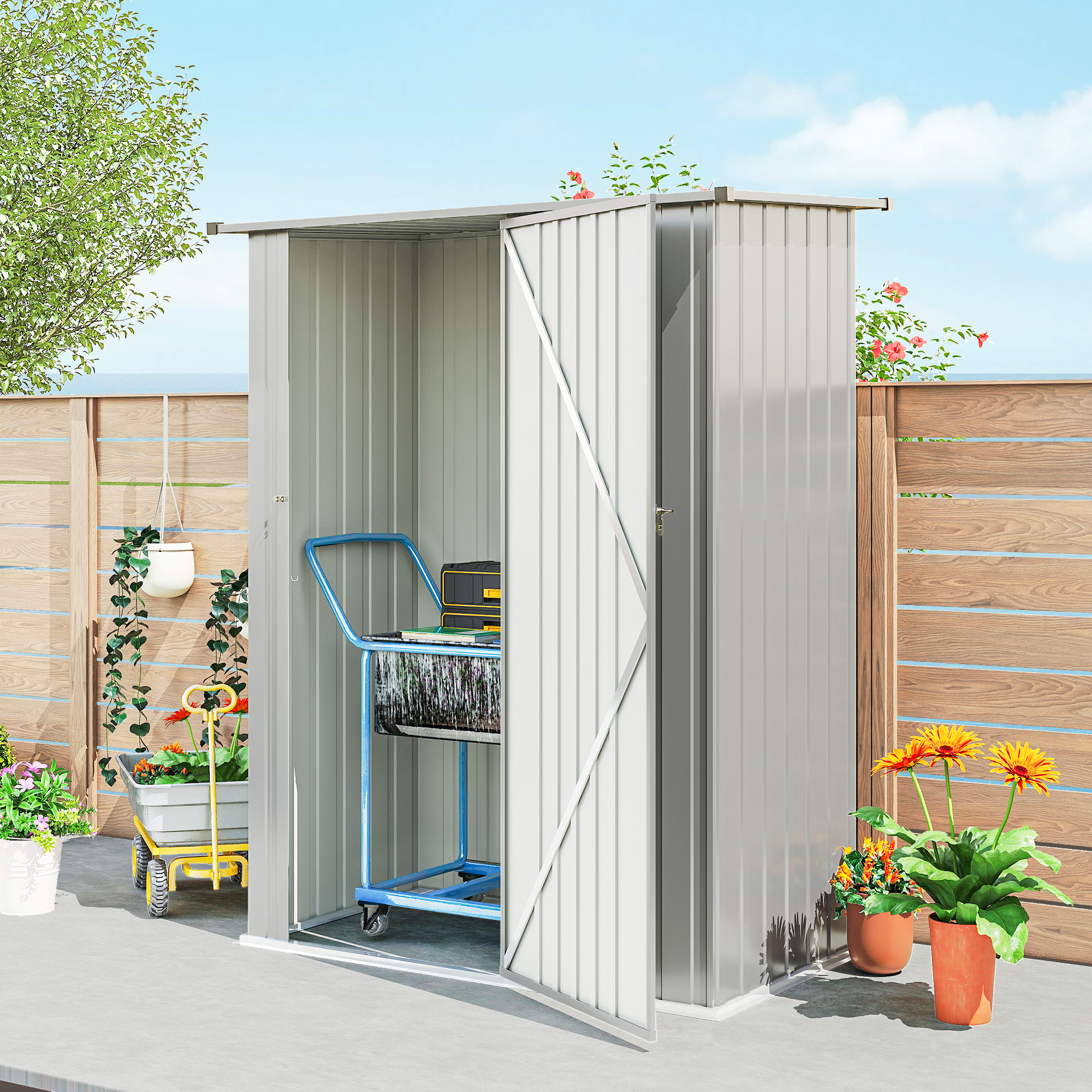 Capanno Porta Attrezzi in Metallo con Tetto Inclinato e Porta Bloccabile, 142x86x189 cm, Argento