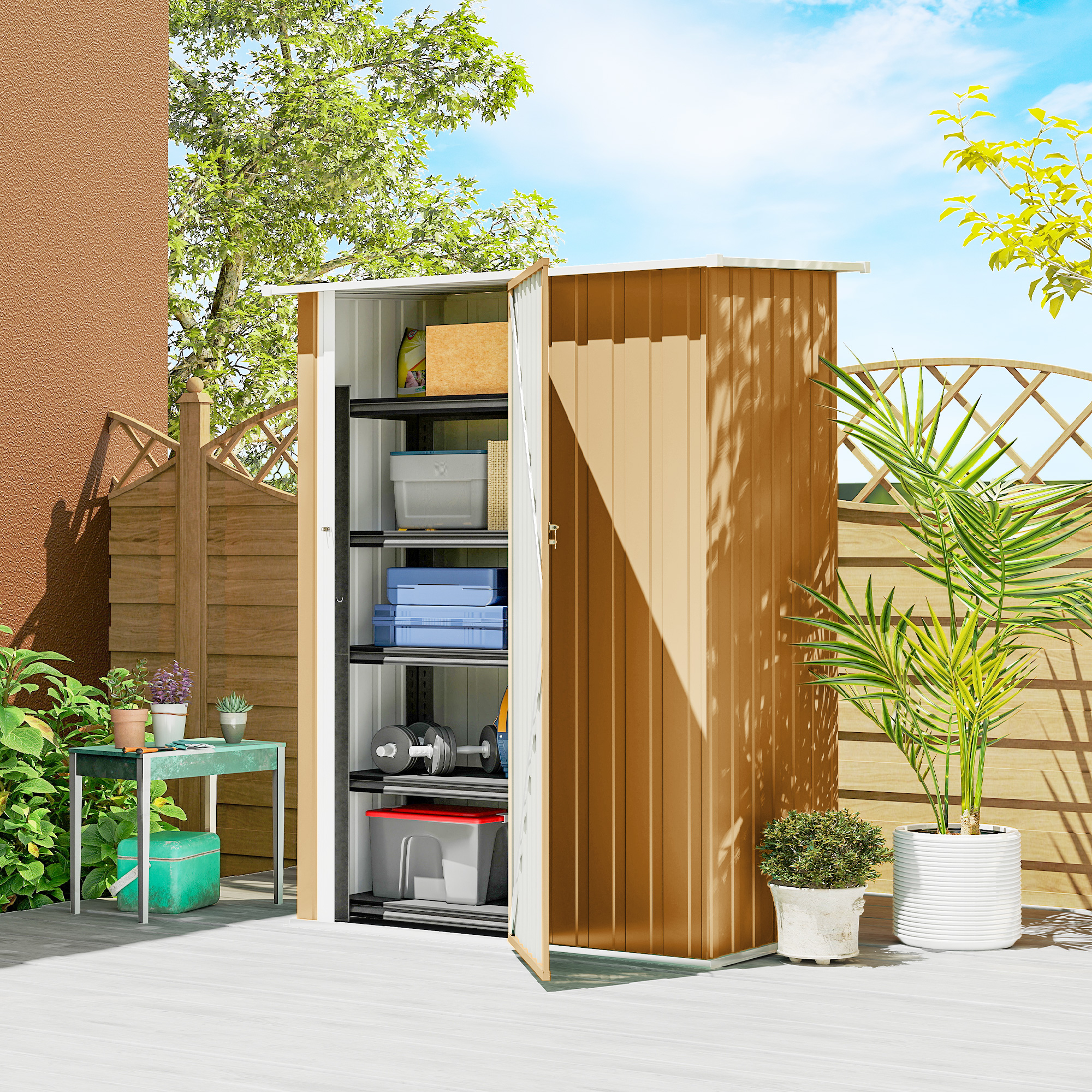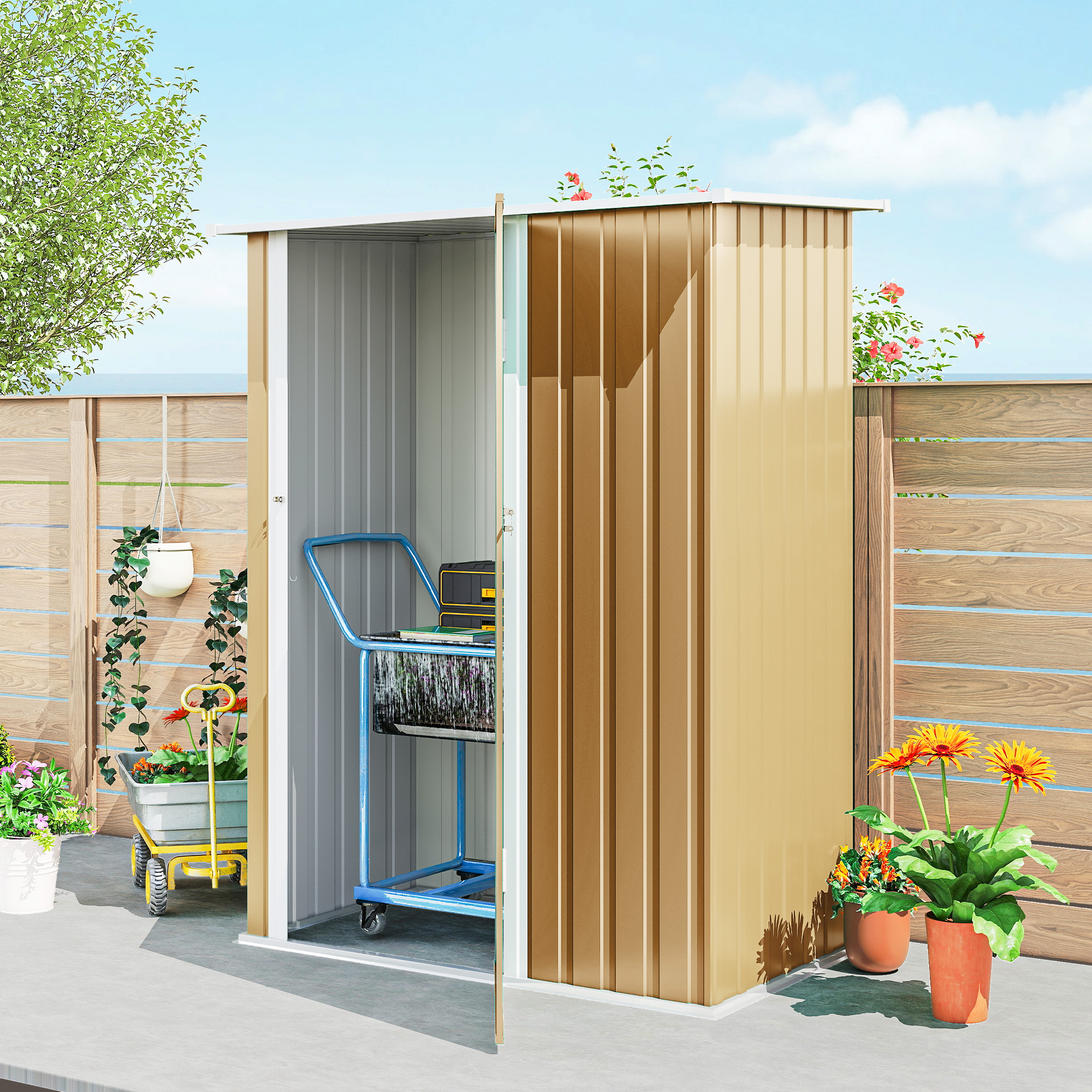 Capanno Porta Attrezzi in Metallo con Tetto Inclinato e Porta Bloccabile, 142x86x189 cm, Giallo