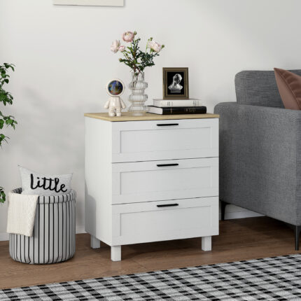 Cassettiera 3 Cassetti Moderna in Legno, 60x38x71 cm, Bianca e color Legno