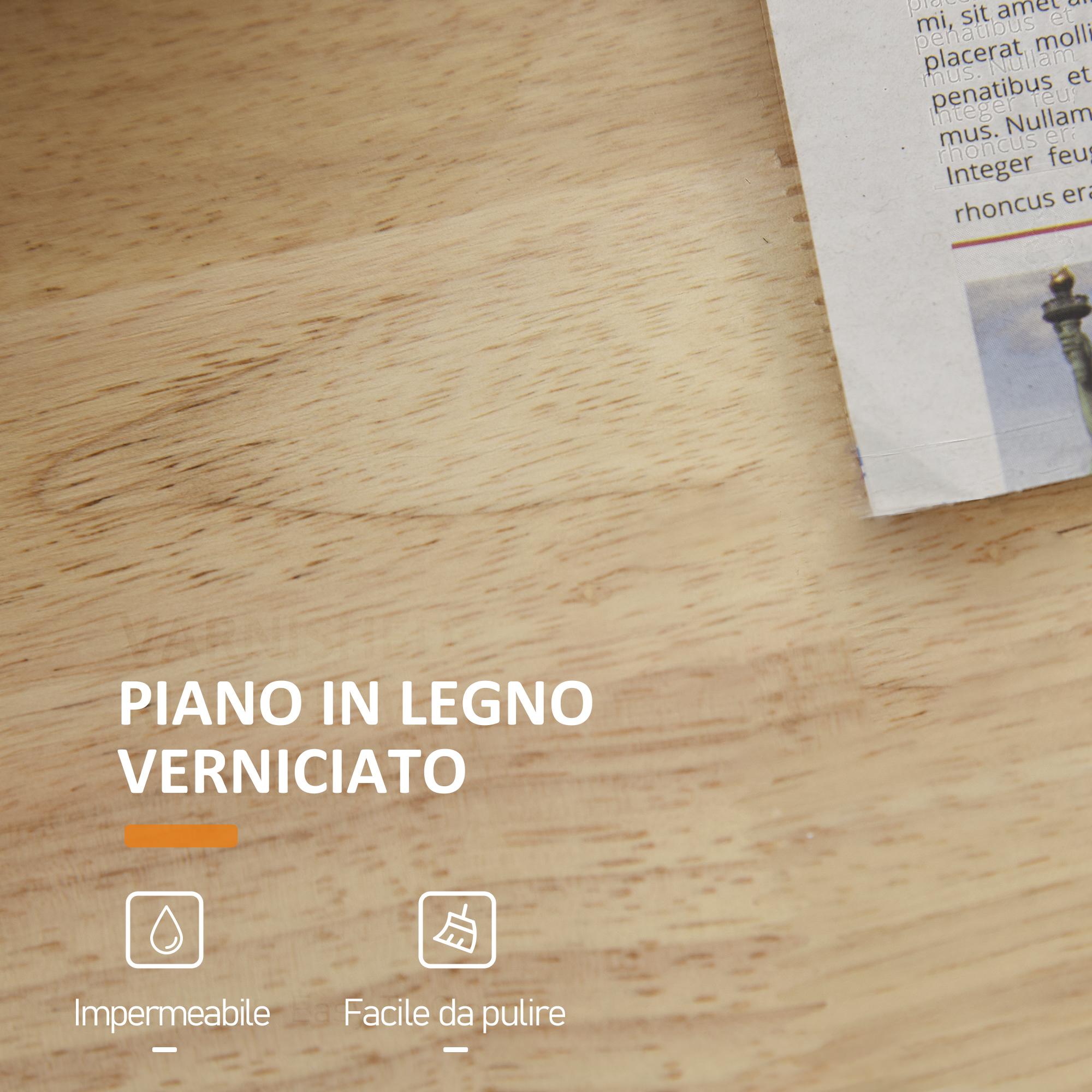 - • Il piano di lavoro in legno di caucciù verniciato è resistente all’acqua e facile da pulire