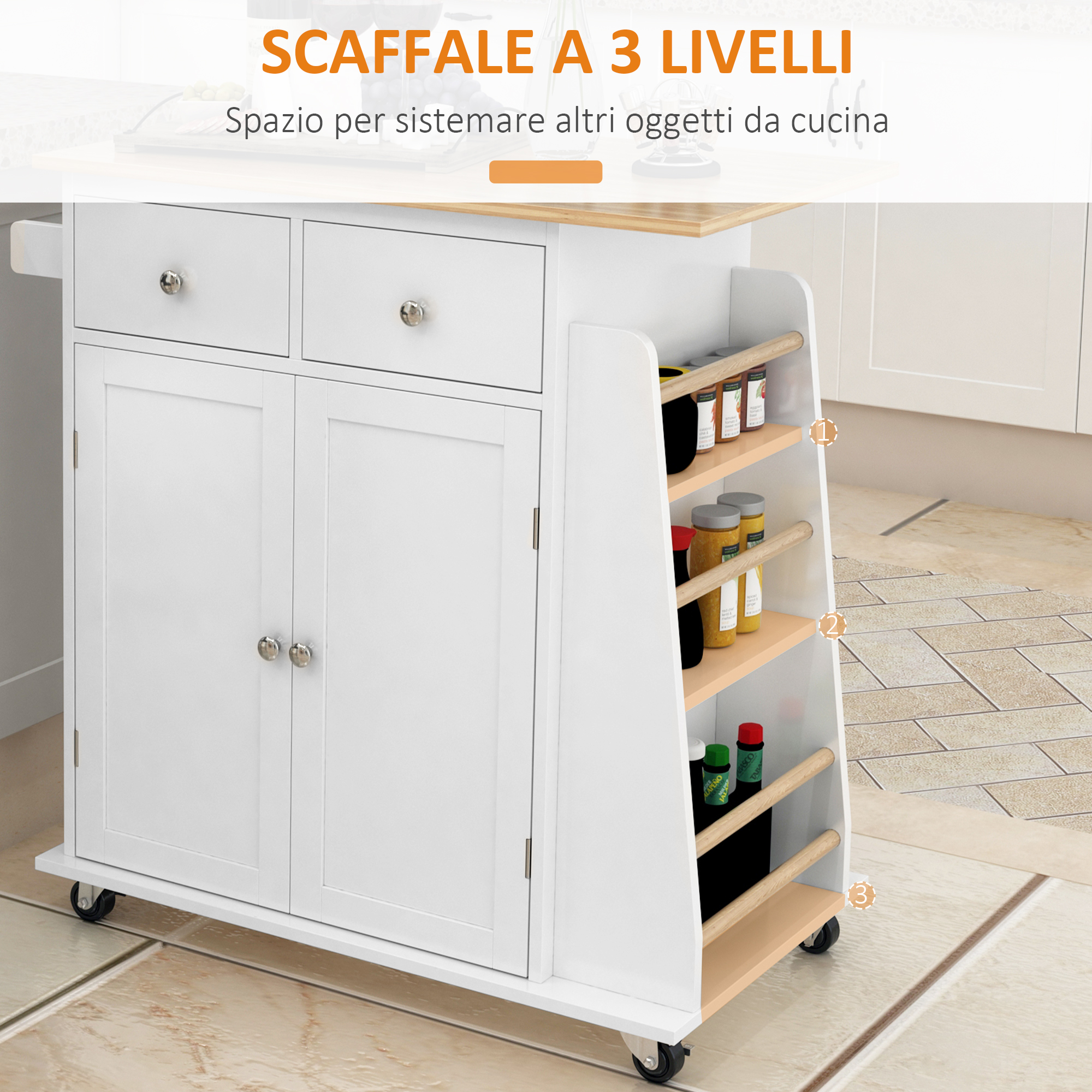 Carrello da Cucina Portaspezie a 3 Livelli e 4 Ruote in MDF e Truciolato, 89x45x89cm, Bianco