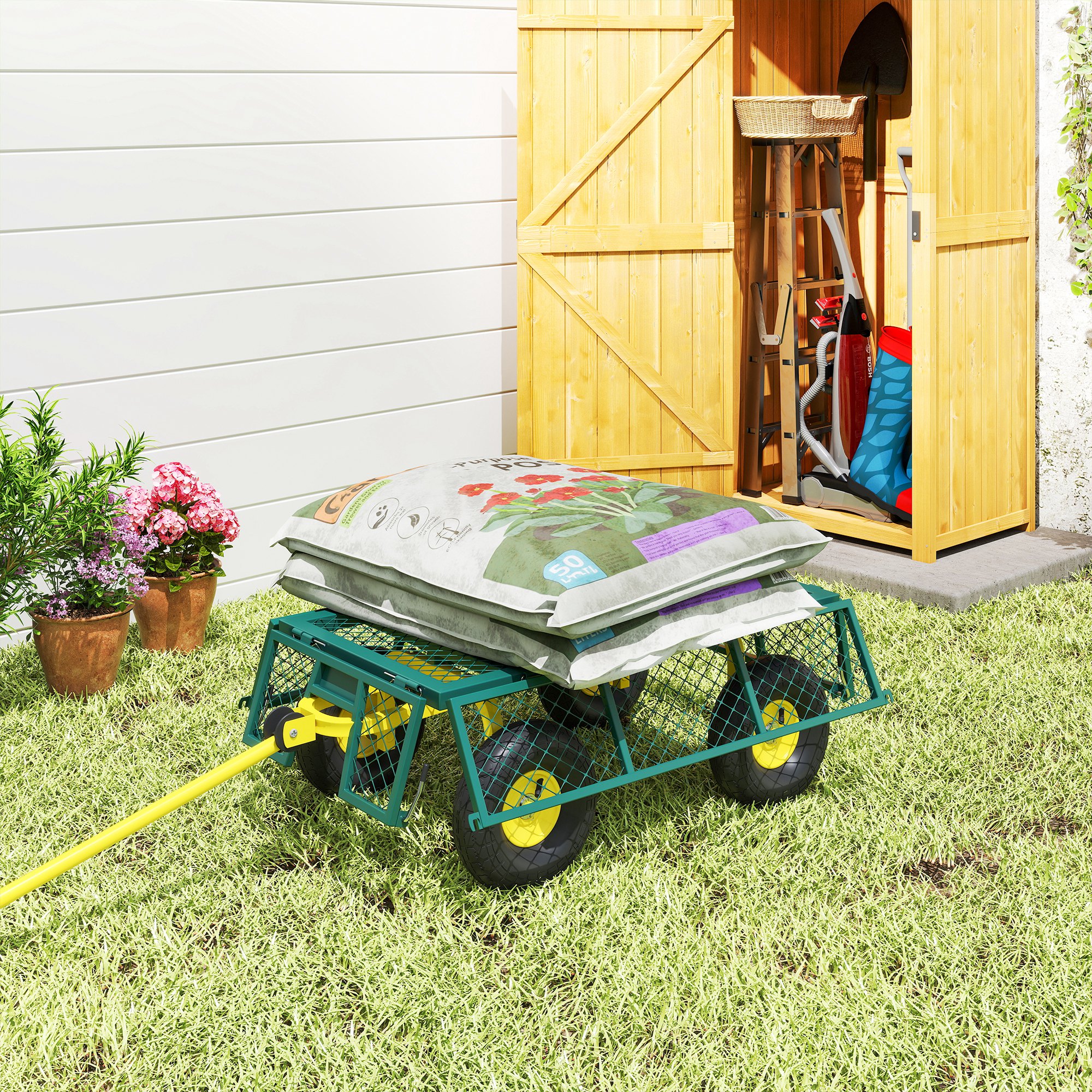 Carrello da Giardino in Acciaio con Capacità 2 kg e Pareti Laterali Rimovibili, 104x54x51 cm, Verde e Giallo