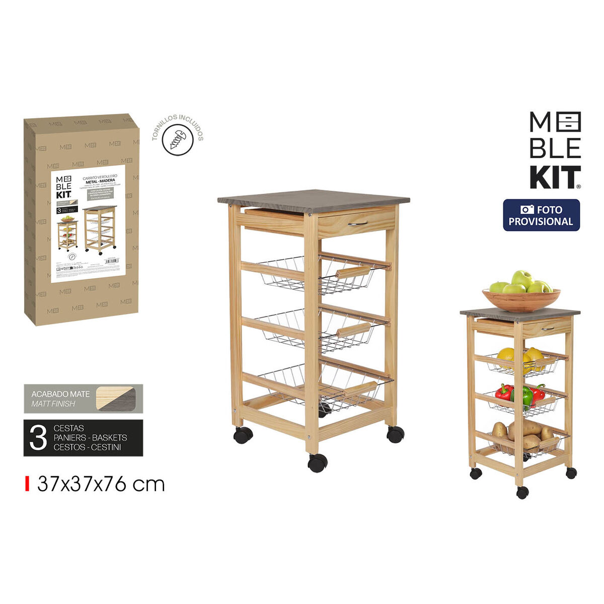 Carrello per Verdure MobleKit Marrone Grigio Legno Metallo 37 x 37 x 76 cm (2 Unità)X2