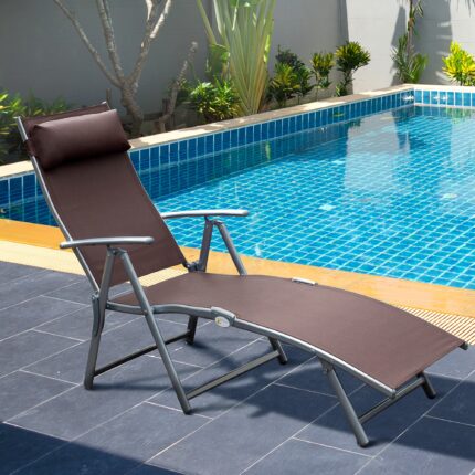Sdraio da Giardino Pieghevole con Cuscino, Schienale con 7 Reclinazioni, 137×63,5×1,5cm, Marrone