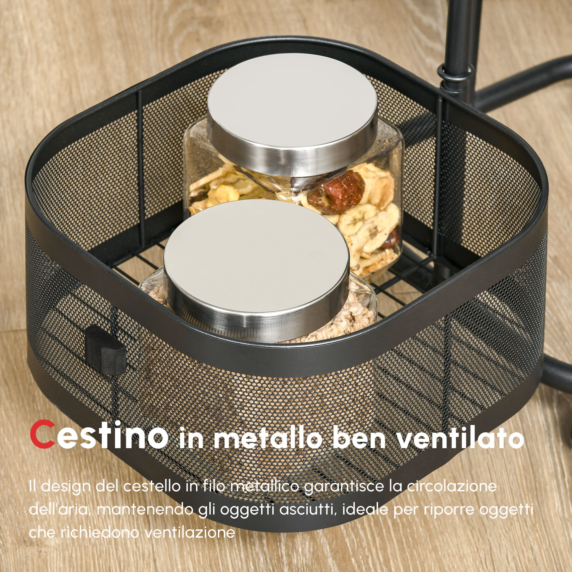 Carrello Portavivande con 4 Cestelli, Piano d’Appoggio e Ruote, in Acciaio e PP, 33x33x77 cm