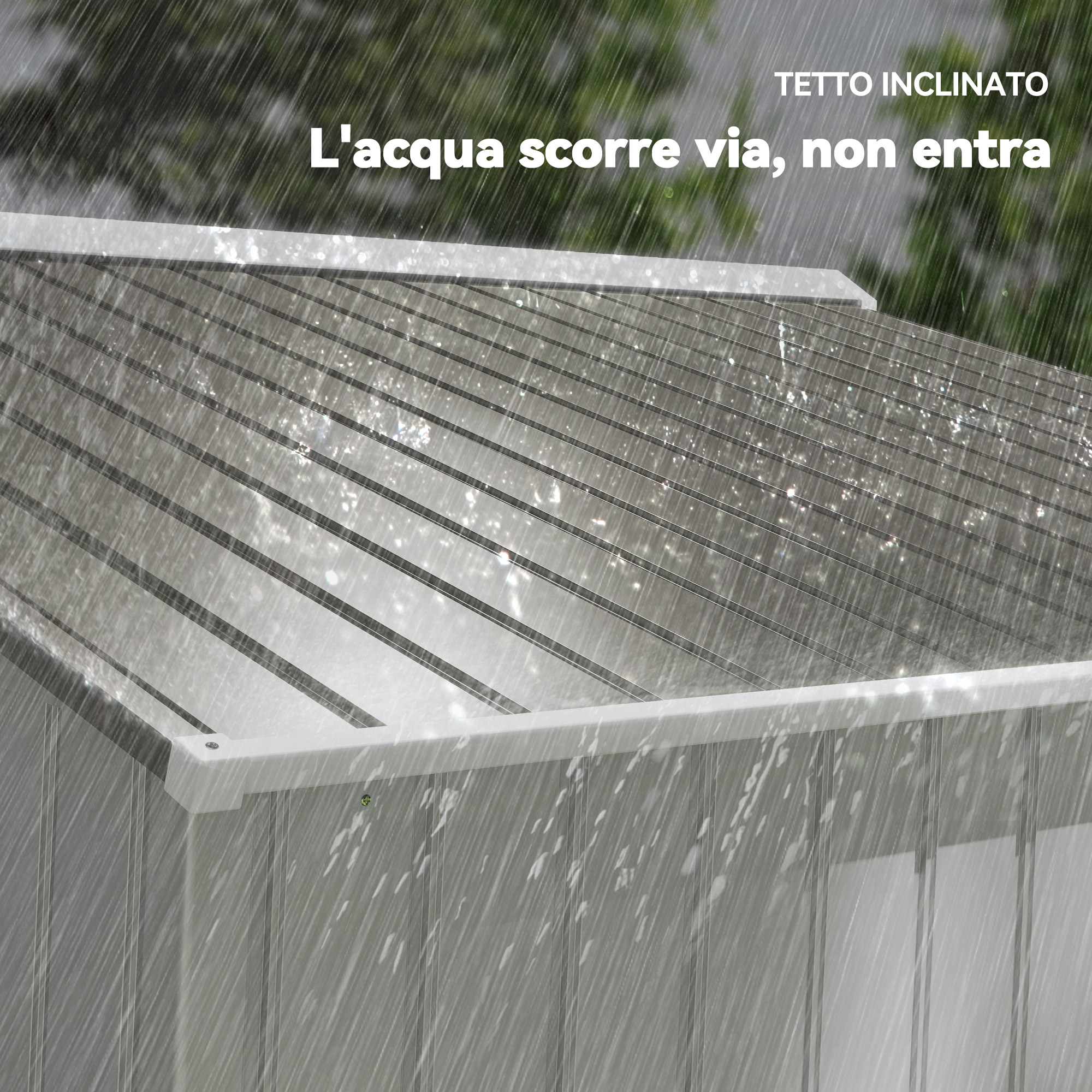 - • Tetto inclinato per impedire l’accumulo d’acqua