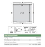 CARATTERISTICHE : Spessore della parete 28 mm Misure pareti 304×300 cm Misure interne 276×276 cm Altezza muro 185 cm Altezza totale 200cm Area 7.62m² Misure porte 169x173h cm colli: 330x120x43 cm peso tot. 480kg IMPORTANTE CONSEGNA : il prodotto viene consegnato su bancale ben sigillato con legno e cellofan . Se non si è provvisti di muletto allo scarico è necessario far trovare del personale in modo da aprire il bancale sul camion con l’ aiuto dell’ autista e scendere i vari componenti a mano (di facile presa per 2 persone) – sulle isole e nei centri più piccoli la consegna potrebbe richiedere qualche giorno in più. UTILE DA SAPEREBUROCRAZIA: L’installazione di una casetta comporta la richiesta alle autorità comunali. Tali richieste possono variare da comune a comune. Deve essere quindi onere e cura dell’acquirente fare le richieste, le autorizzazioni, i permessi e gli assensi delle autorità amministrative necessari secondo le norme vigenti. INSTALLAZIONE: La casetta deve essere installata su una base stabile e indeformabile, in un luogo sopraelevato, che permetta il drenaggio dell’acqua piovana. Al riparo dagli spruzzi dell’eventuale impianto di irrigazione. A dovuta distanza di siepi verdi che impediscano la naturale traspirazione del legno. Normalmente la casetta viene consegnata con un mezzo pesante; se l’imballo è integro la casetta può rimanere all’esterno qualche giorno; (massimo una settimana) a condizione che sia poggiata su una base perfettamente in piano. Prima di iniziare il montaggio, leggere attentamente le istruzioni di montaggio; Per garantire lunga vita alla vostra casetta è consigliabile, prima di iniziare il montaggio, applicare una mano di impregnante (trasparente o molto chiaro) su tutte le tavole e i listelli che la compongono. SICUREZZA: Si raccomanda di eseguire il montaggio adottando sempre i dispositivi di protezione individuali; scarpe, guanti, occhiali protettivi e utilizzare con prudenza gli elettroutensili, scale e tutti gli attrezzi da lavoro necessari. Particolare attenzione è da prestare ai bambini che vanno tenuti lontani dalla zona di lavoro, fino a montaggio completato. MANUTENZIONE: Per proteggere e prolungare la vita della casetta in legno è necessaria una corretta manutenzione. Tutte le casette in legno sono fornite grezze, è necessario proteggerle e decorarle con l’uso di prodotti specifici, come impregnanti e antitarlo. Si raccomanda di effettuare un trattamento con impregnante cerato per esterni, scegliendo la tonalità desiderata. Il trattamento andrà ripetuto ogni qualvolta il colore perda di tonalità o brillantezza a seconda dell’esposizione del legno alle intemperie cercando di utilizzare sempre una stessa colorazione . Controllare periodicamente la stabilità della casetta, il serraggio delle viti e il corretto funzionamento della porta e della finestra. PRECAUZIONI: Chiudere sempre la porta dopo il suo utilizzo. Non inserire mai oggetti incandescenti come barbecue ancora caldi o con braci accese. IMPERMEABILIZZAZIONE: La casetta è fornita di cartonfeltro bitumato che se montato correttamente, garantisce una durata di circa due/ tre anni, conviene quindi acquistare e impermeabilizzare la casetta con una copertura di lunga durata come tegole bituminose, onduline, guaina ardesiata ecc. ecc. MONTAGGIO: