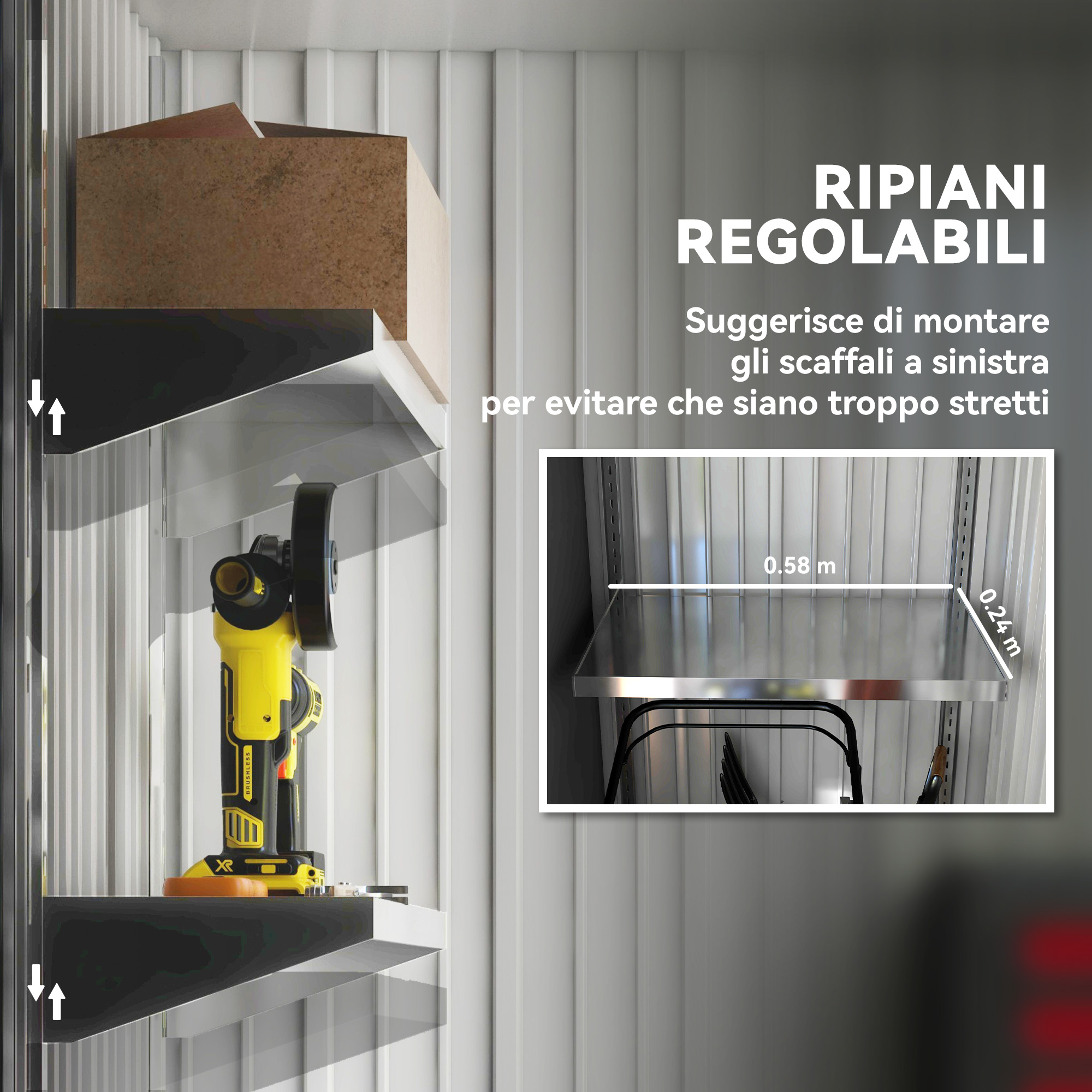 - • 2 ripiani regolabili