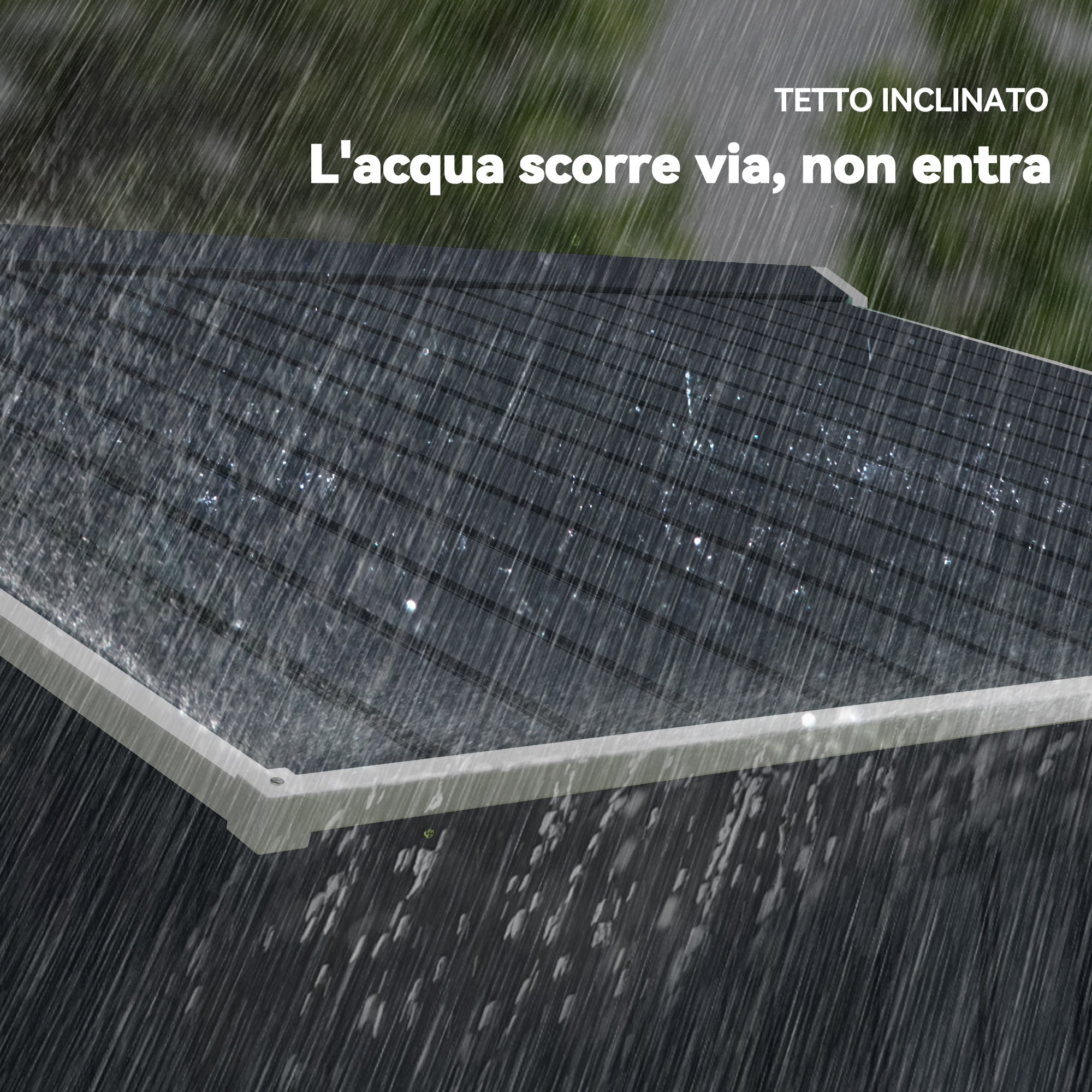 - • Tetto inclinato per impedire l’accumulo d’acqua