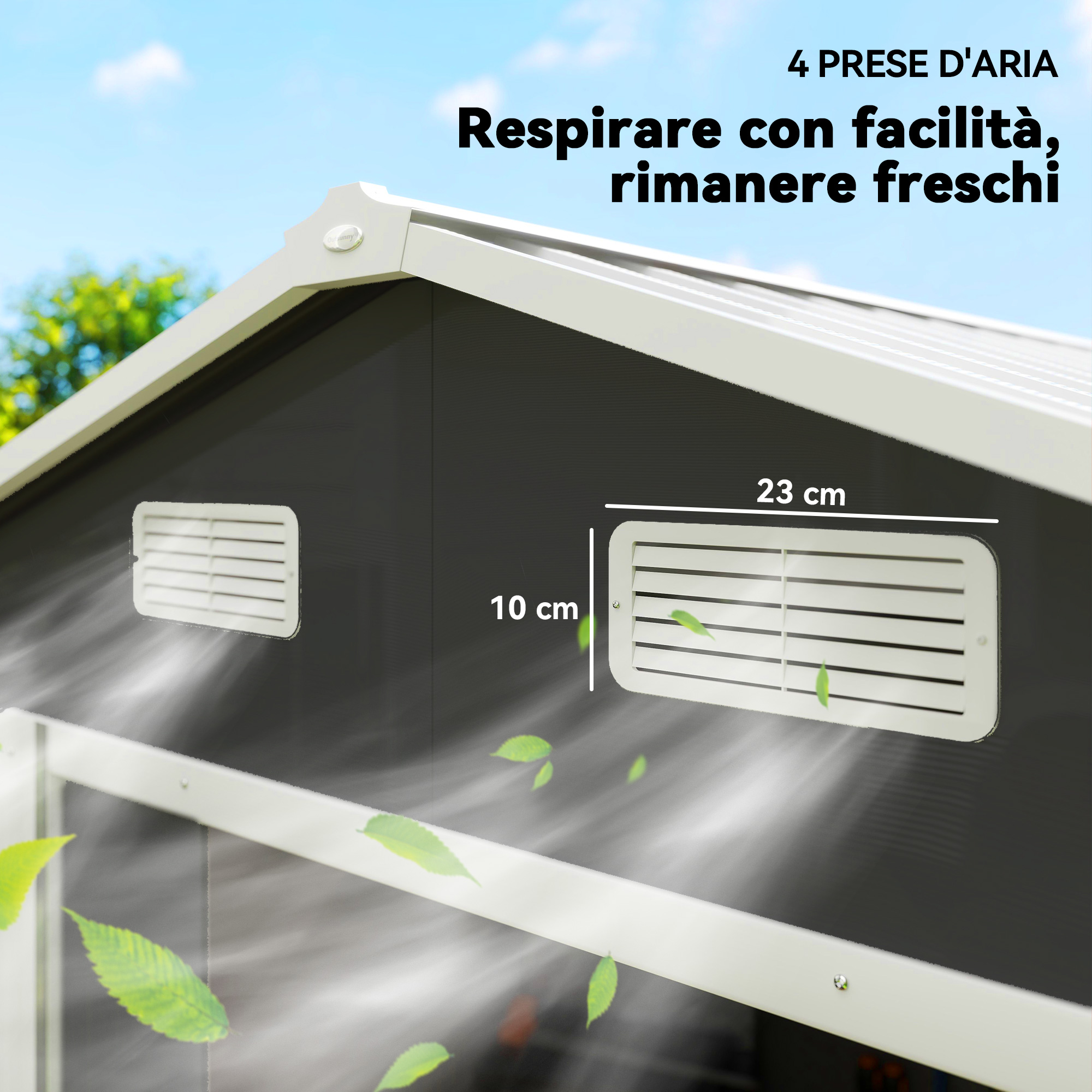 Casetta porta Attrezzi con Porte Scorrevoli e 4 Prese d’Aria, in Acciaio e PP 196x236x208 cm, Grigio Scuro